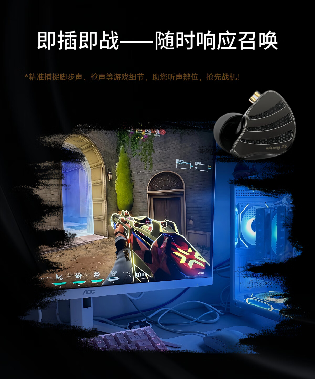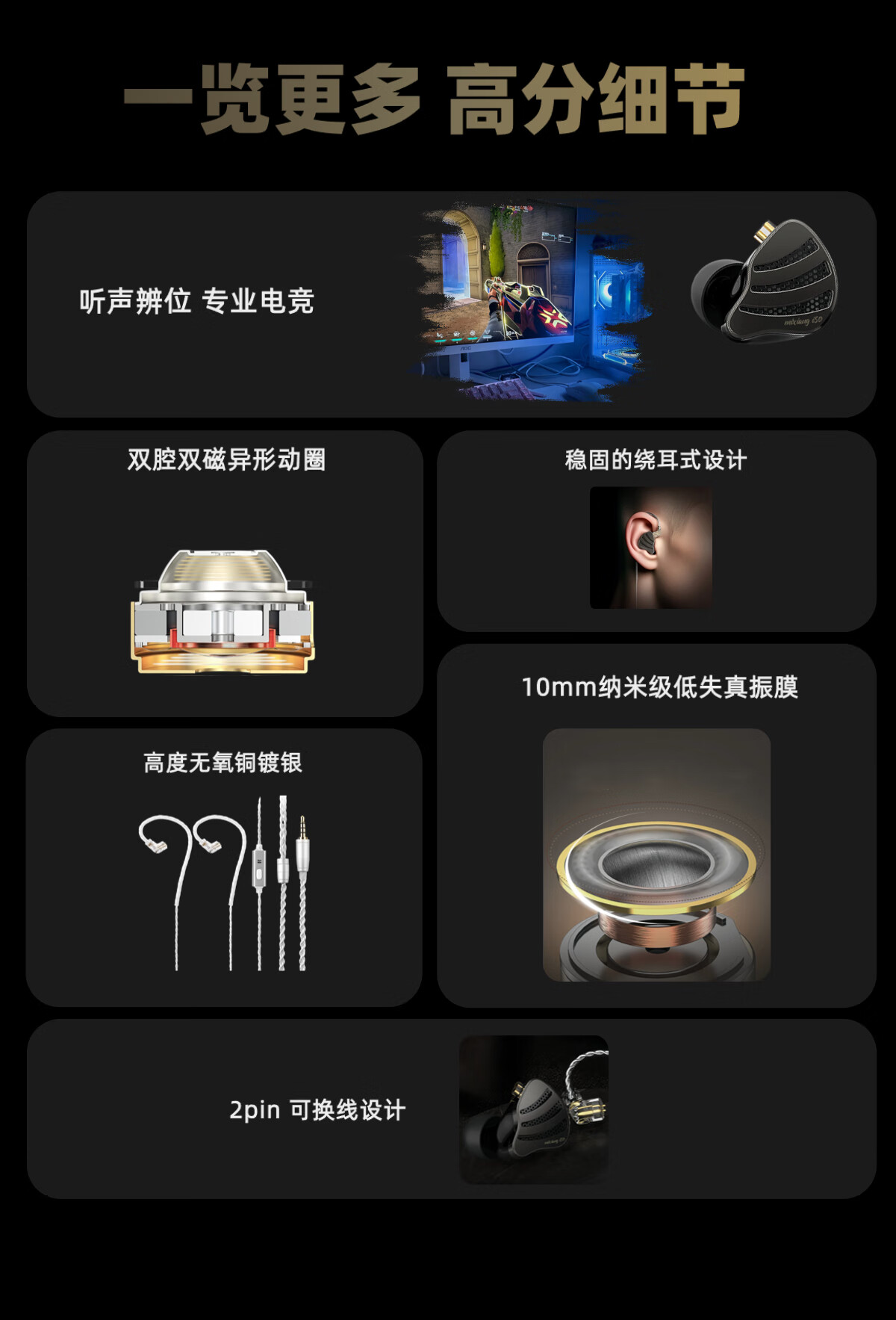 Mixiang i50 eSports HiFi wired in-ear gaming headset eSports special listening position high fidelity computer recommendation mirror silver-3.5mm with microphone free mini sound card