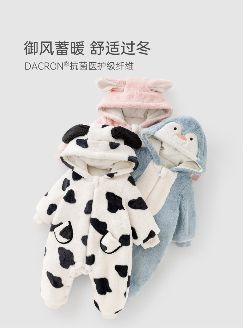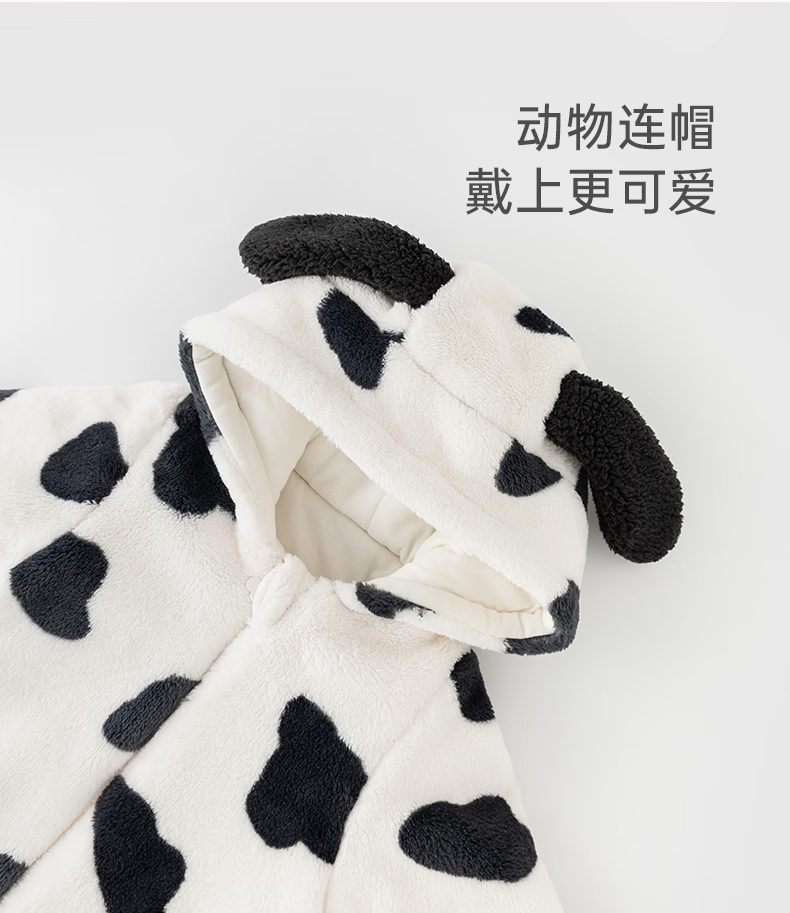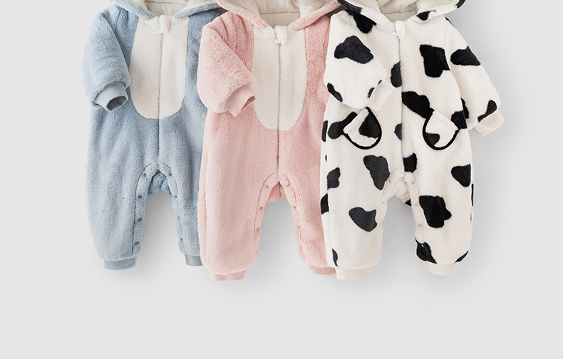 Guiqi Bear Milk Velvet Baby Warm One-piece Baby Hooded Padded Thickened Romper Suit Winter Vine Blue 66cm