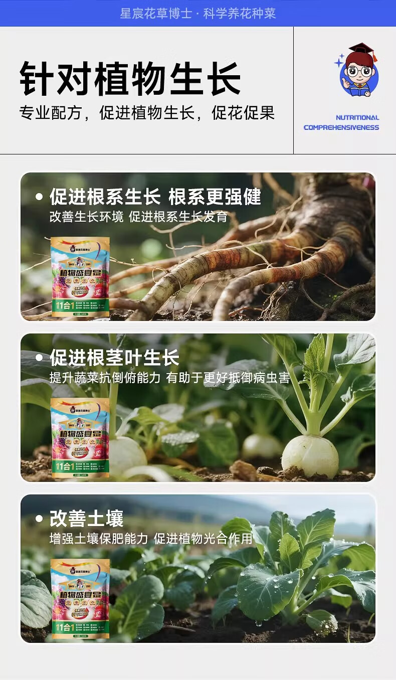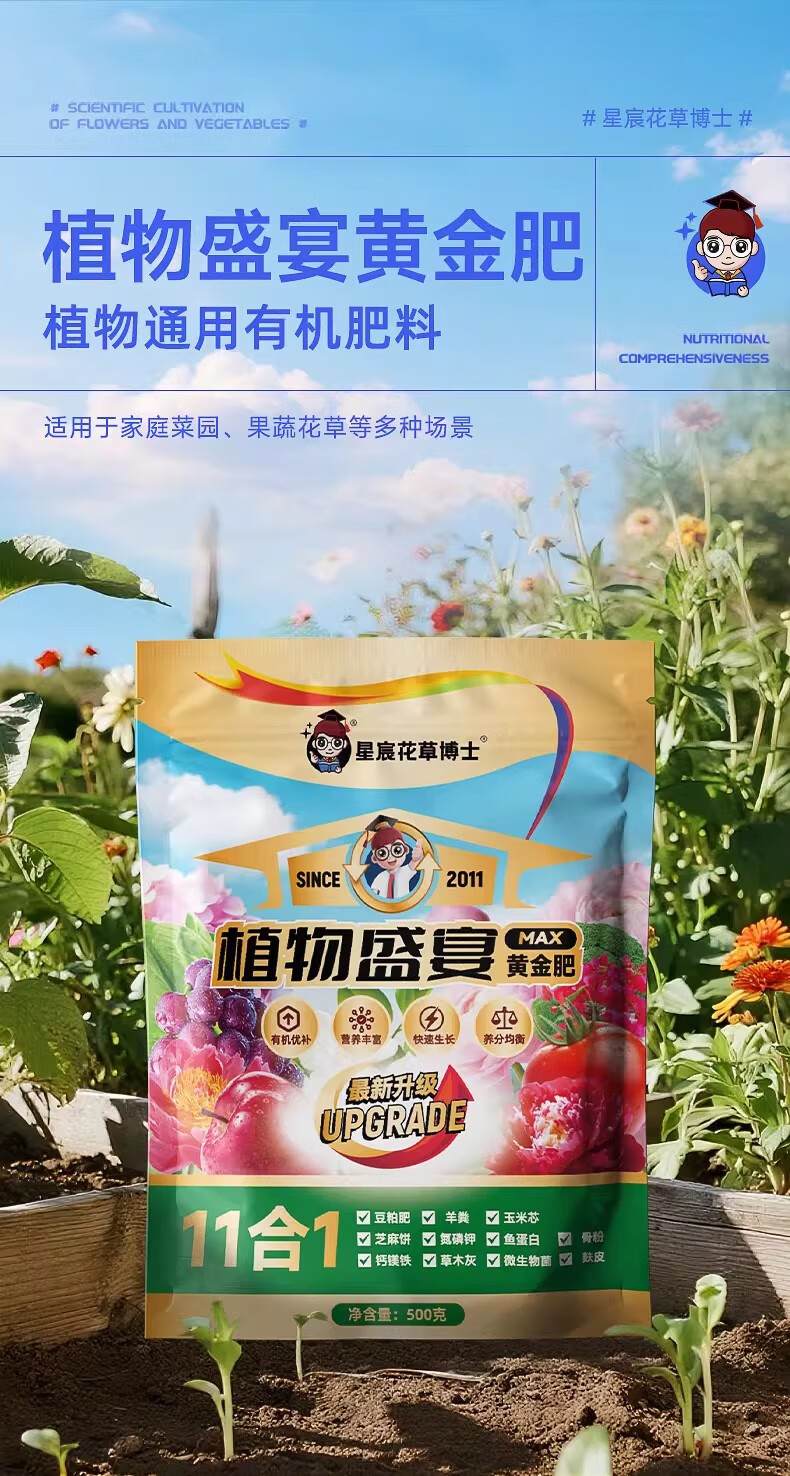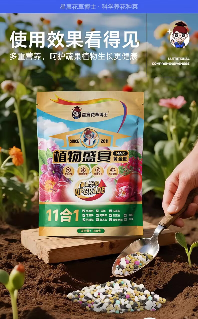 Dr. Xingchen Flower and Grass Compound Fertilizer 11-in-1 Plant Feast Gold Fertilizer Organic Fertilizer Vegetables, Fruits and Vegetables Universal Complete Nutrition Nitrogen, Phosphorus and Potassium Plant Feast Gold Fertilizer 500g*5 bags