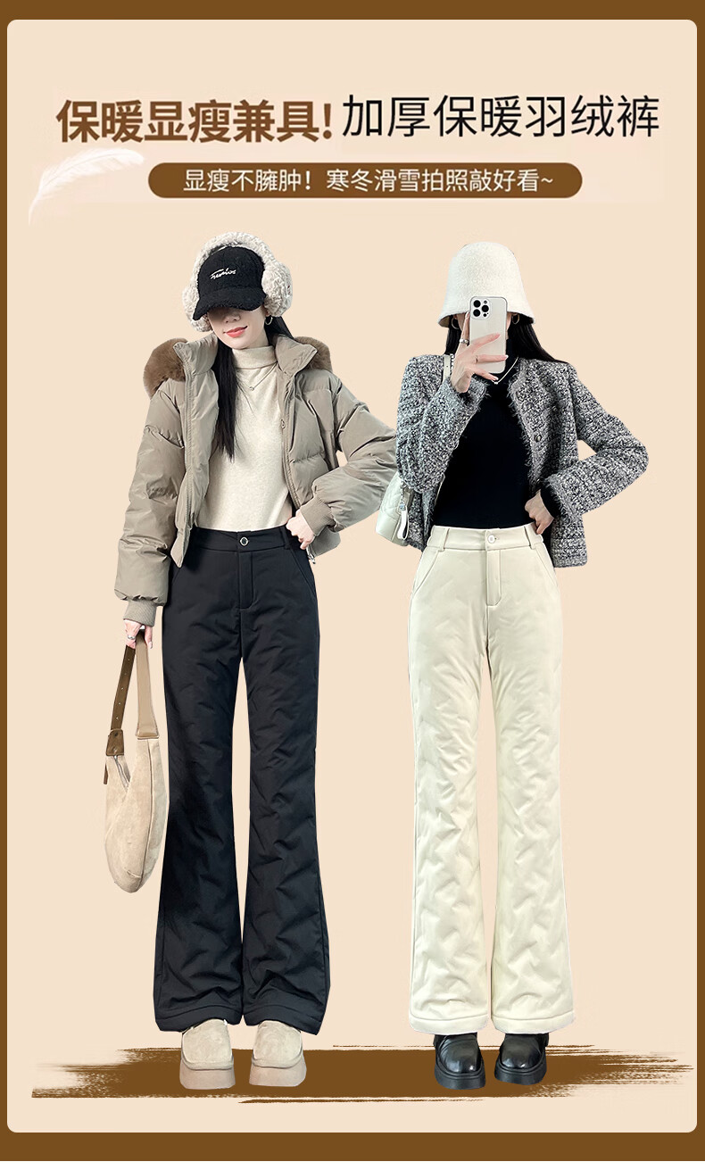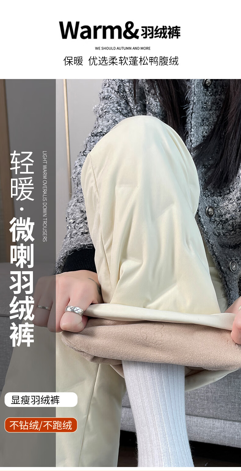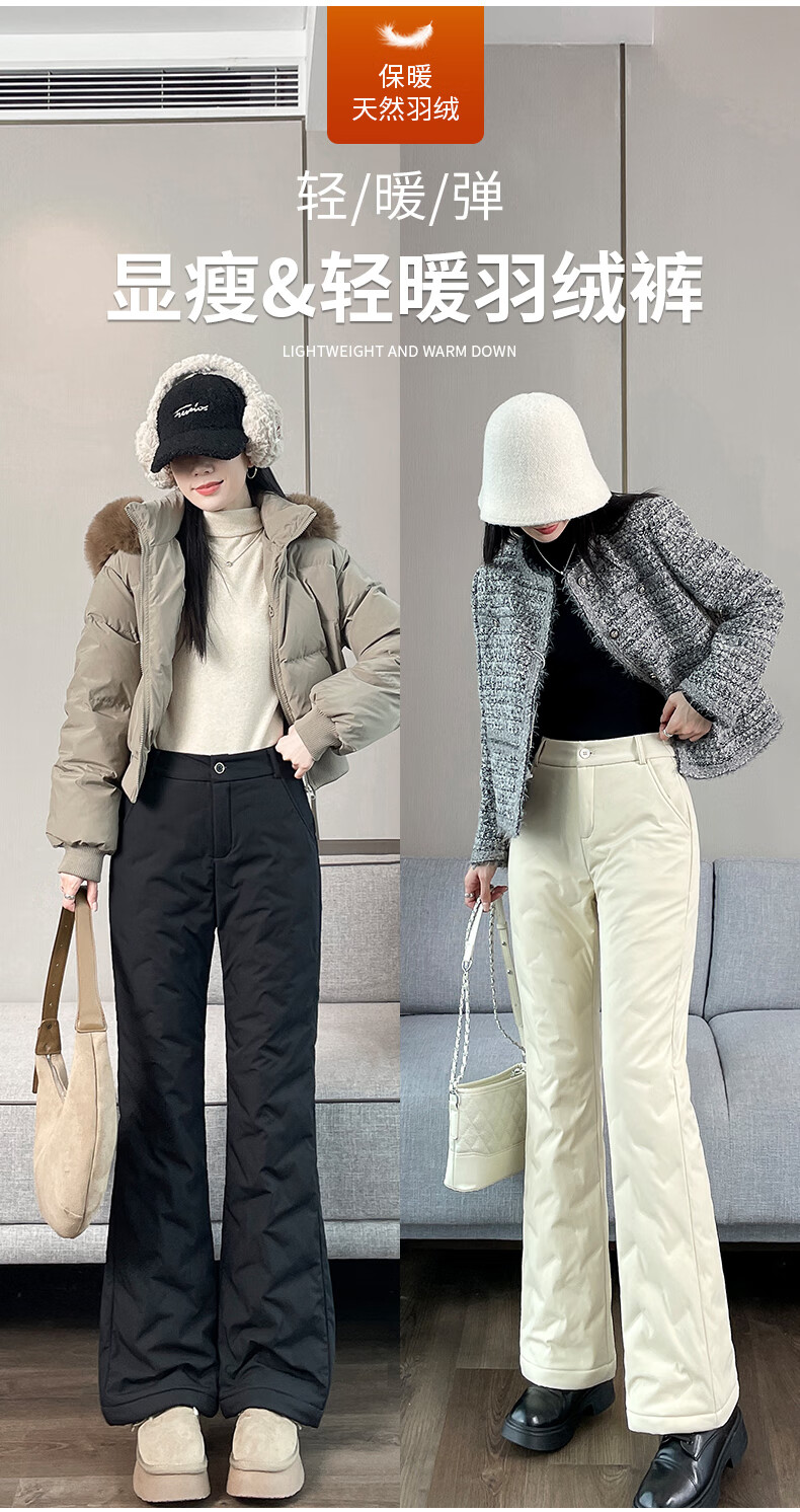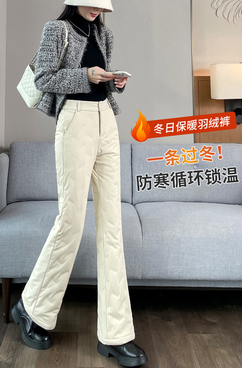 Miguang white duck down micro-flared down pants for women's winter outer wear 2025 new Northeastern thickened cold-resistant warm cotton pants flared pants off-white S 85-95Jin Jin equals 0.5 kg
