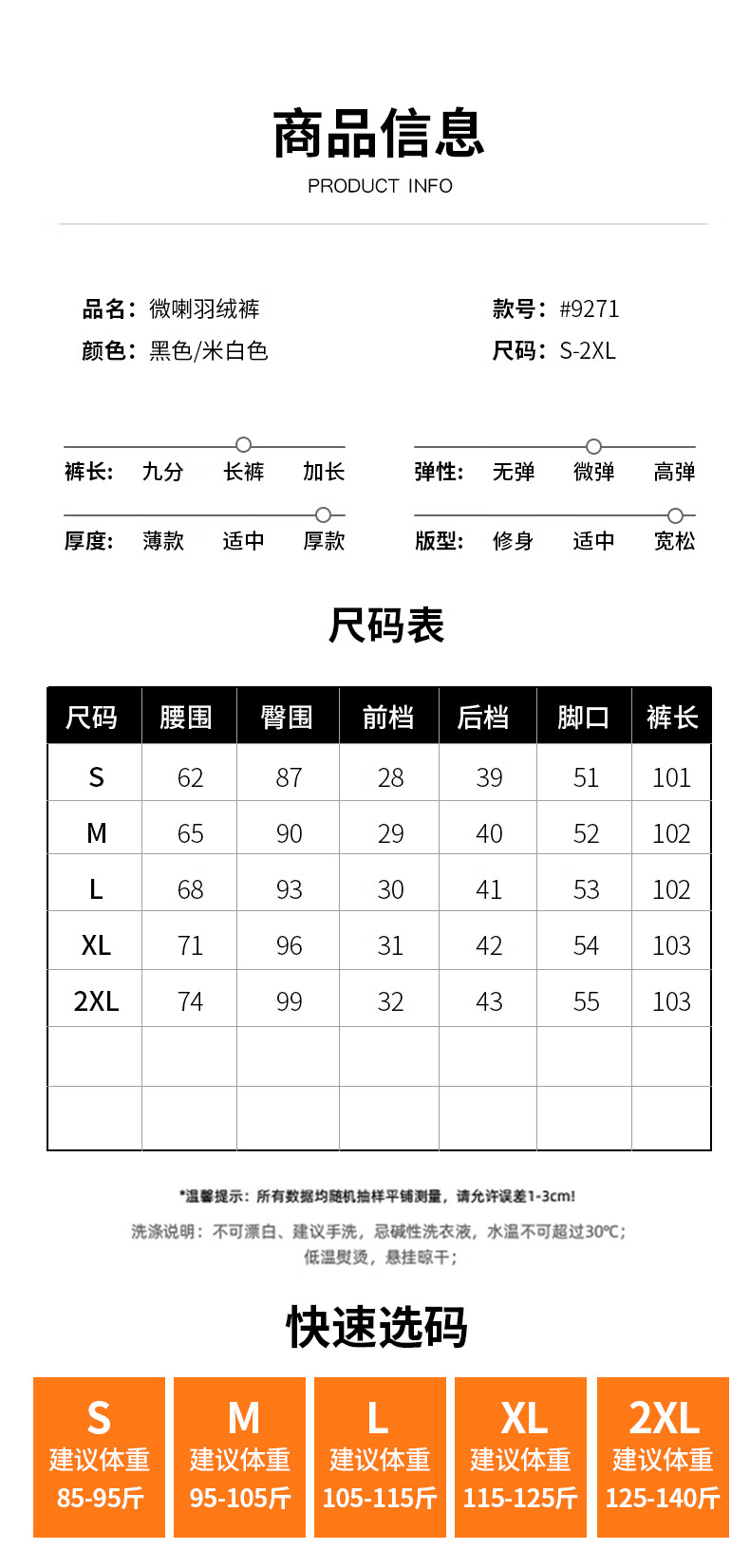 Outseam (cm) 99 cm 101.5 cm 104 cm 106.5 cm 109 cm