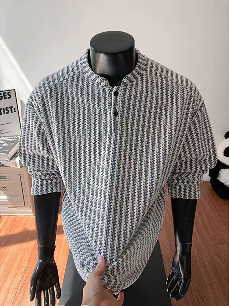 Yingtang herringbone pattern long-sleeved T-shirt for men spring and autumn new Henry collar bottoming shirt loose casual top for men YZXS-CT04 white M
