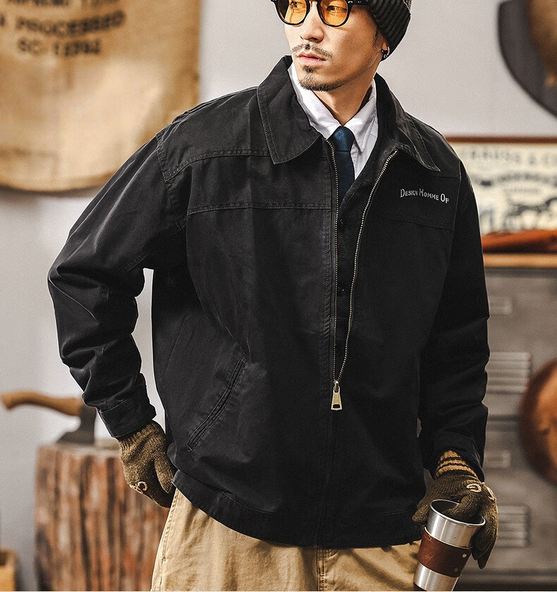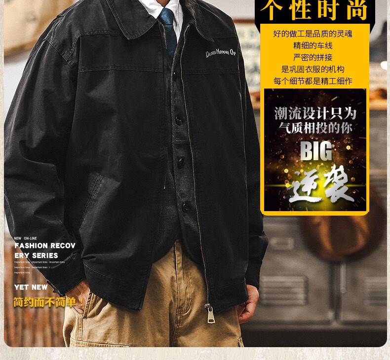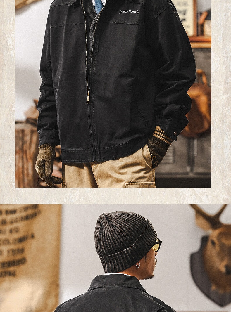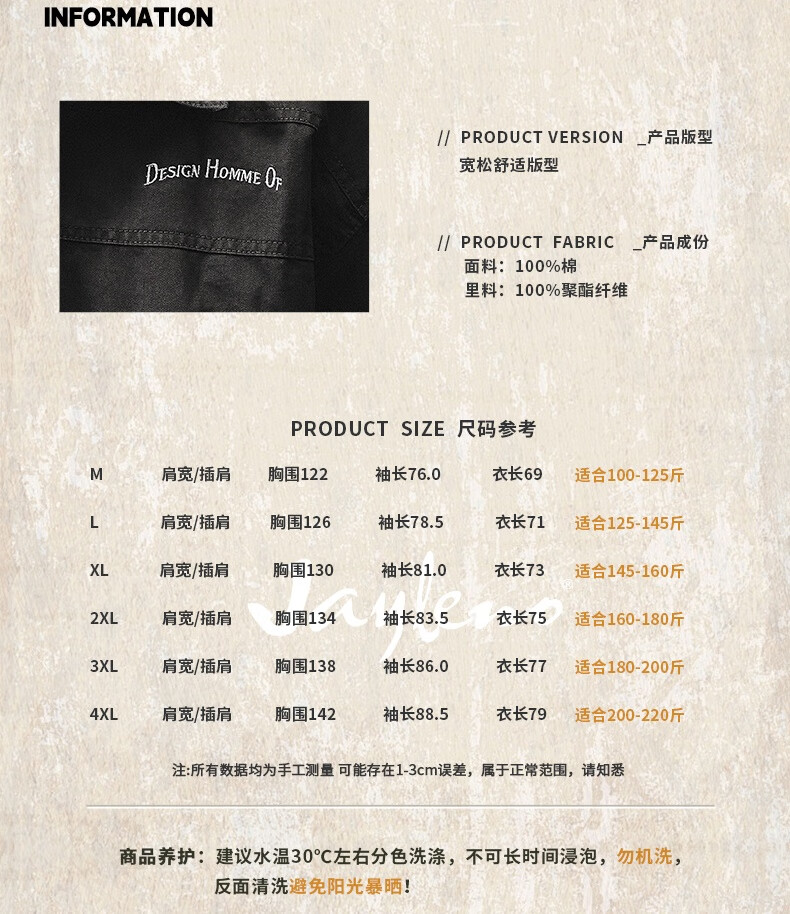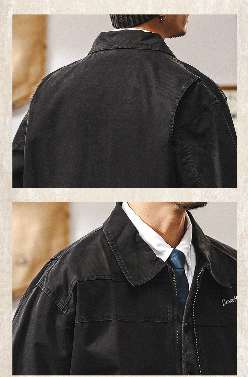 Jeanswest American retro heavyweight workwear jacket for men in autumn trendy brand casual loose washed Detroit jacket for men in spring and autumn black 2XL suitable for 160-180Jin Jin is equal to 0.5 kg