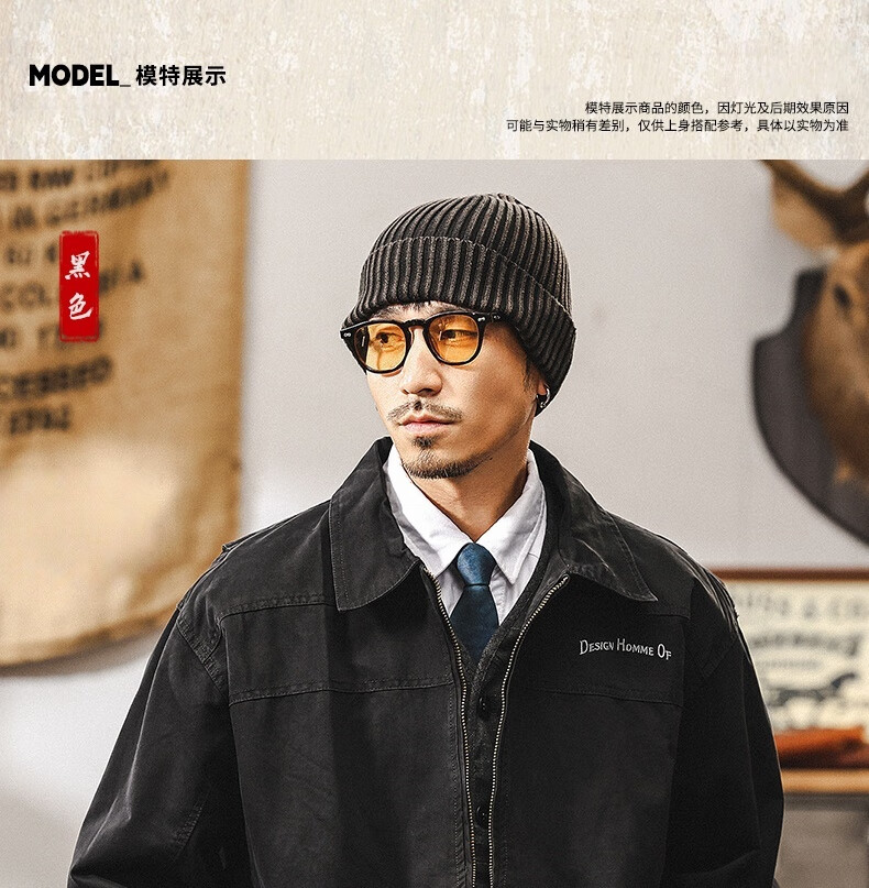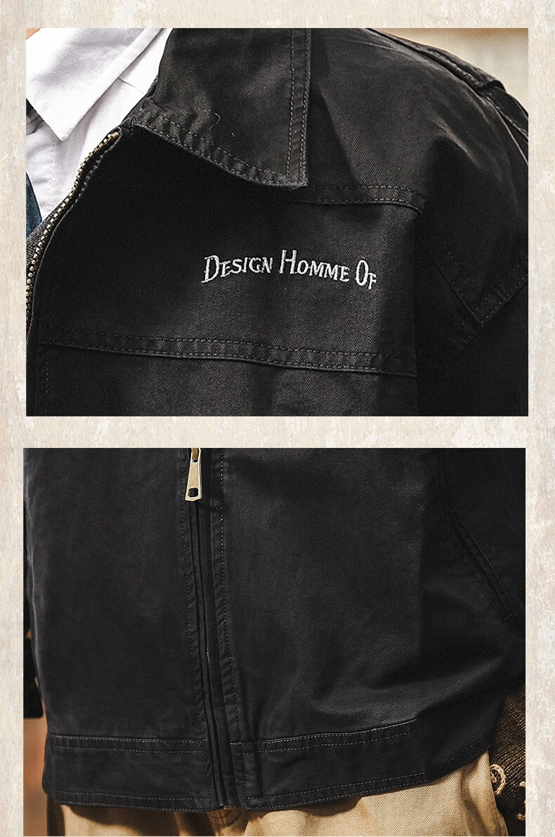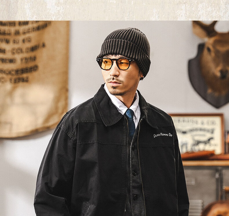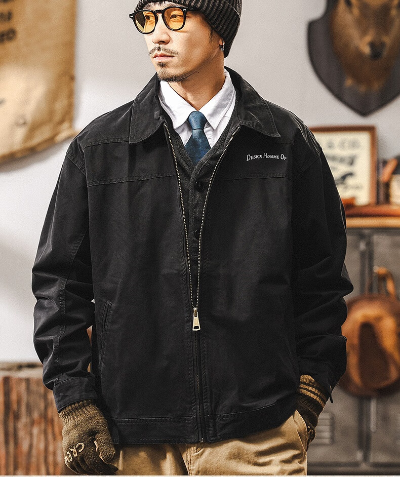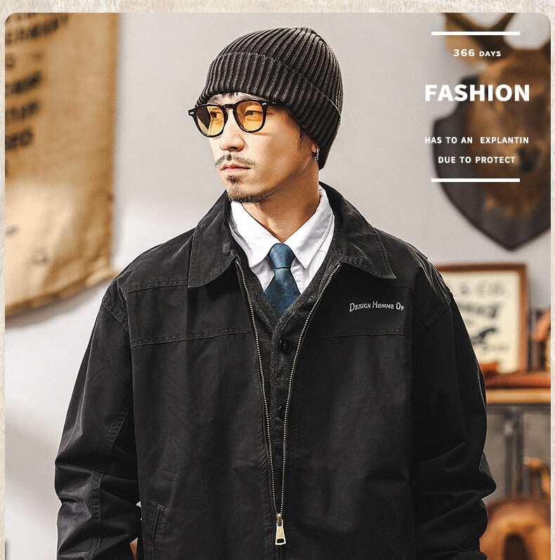 Jeanswest American retro heavyweight workwear jacket for men in autumn trendy brand casual loose washed Detroit jacket for men in spring and autumn black 2XL suitable for 160-180Jin Jin is equal to 0.5 kg