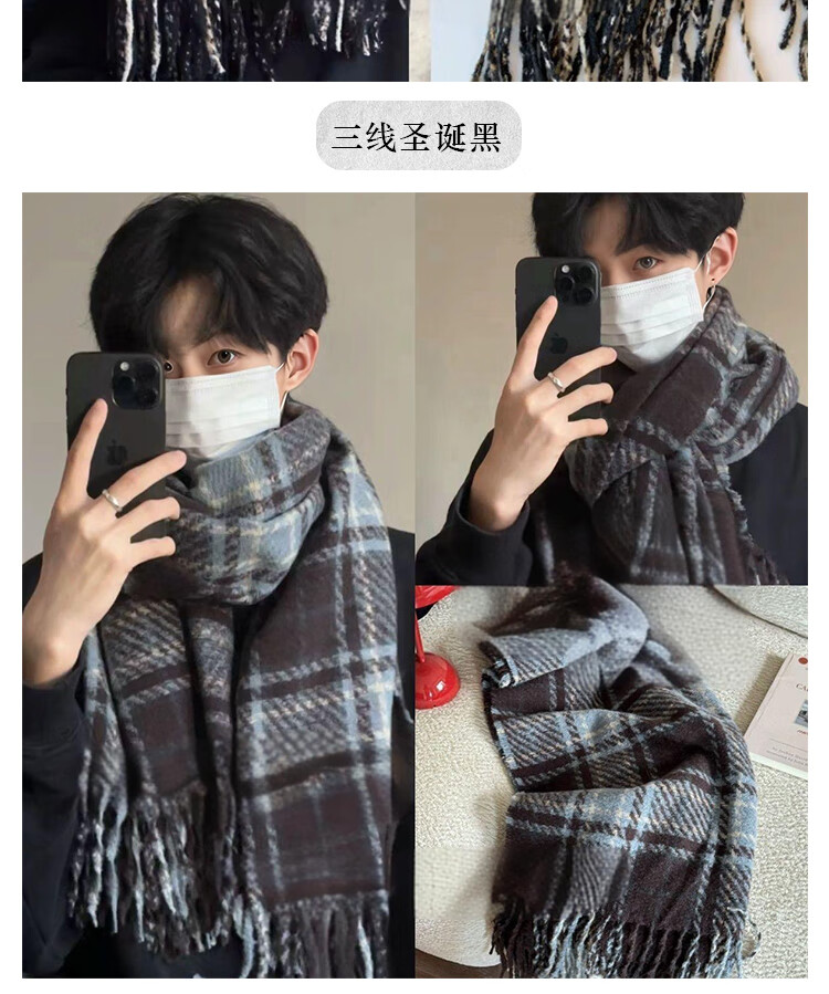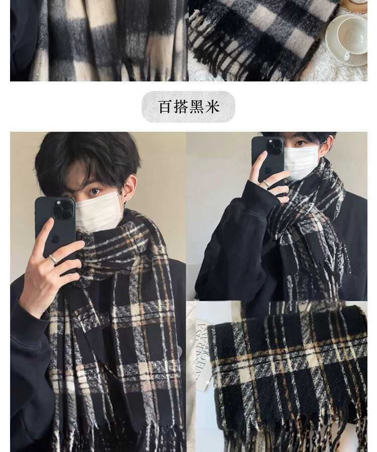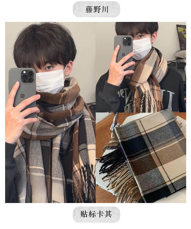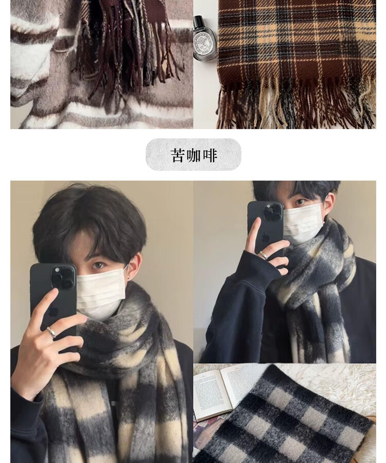 Fat Donglai's Korean style men's plaid high-end scarf for students in autumn and winter to keep warm and versatile for boys, Fujinokawa