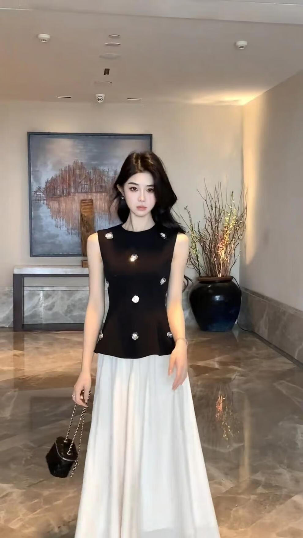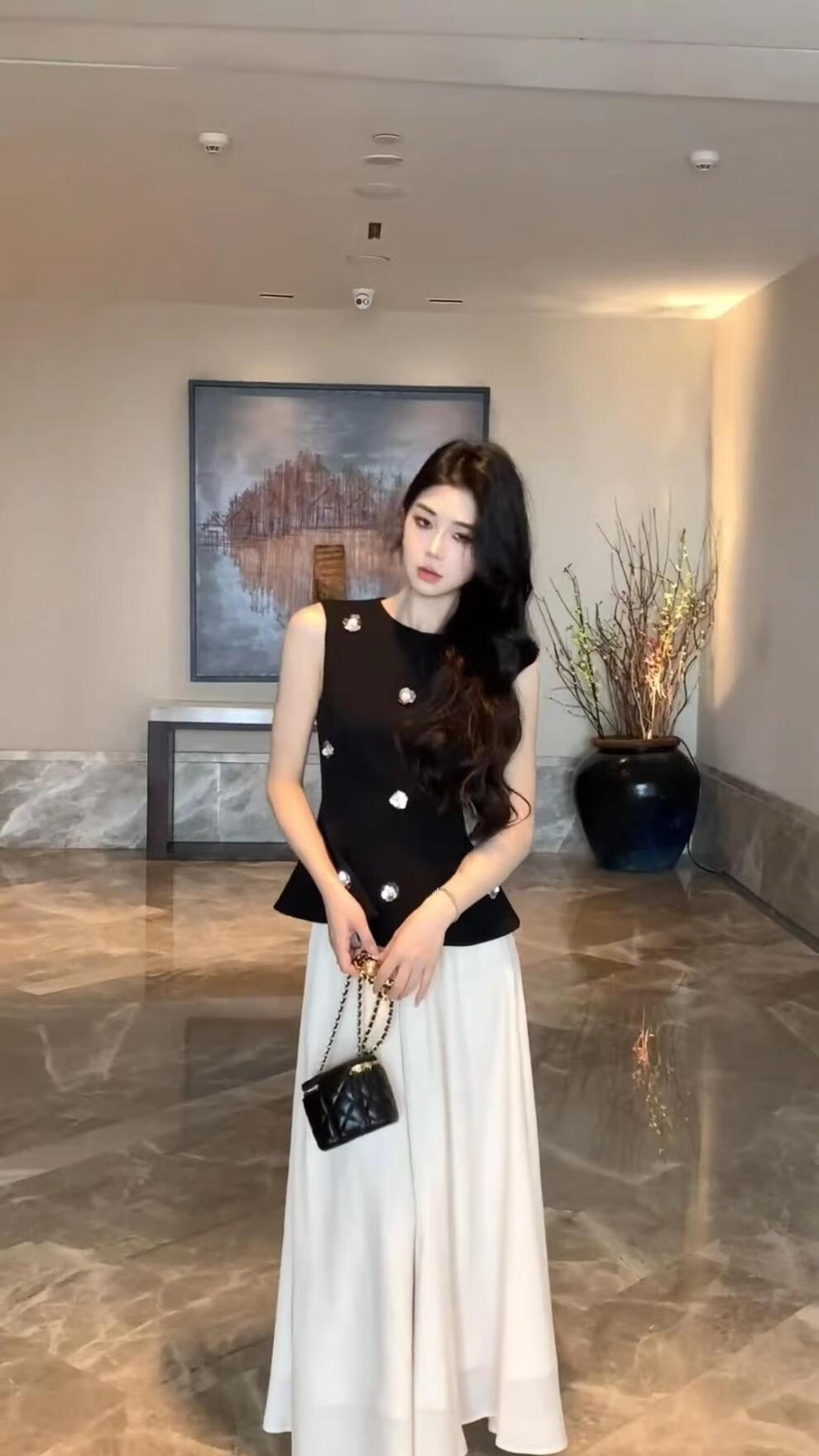 Yingtang Vest Slim Fit Waist Skirt Set Apricot Skirt S