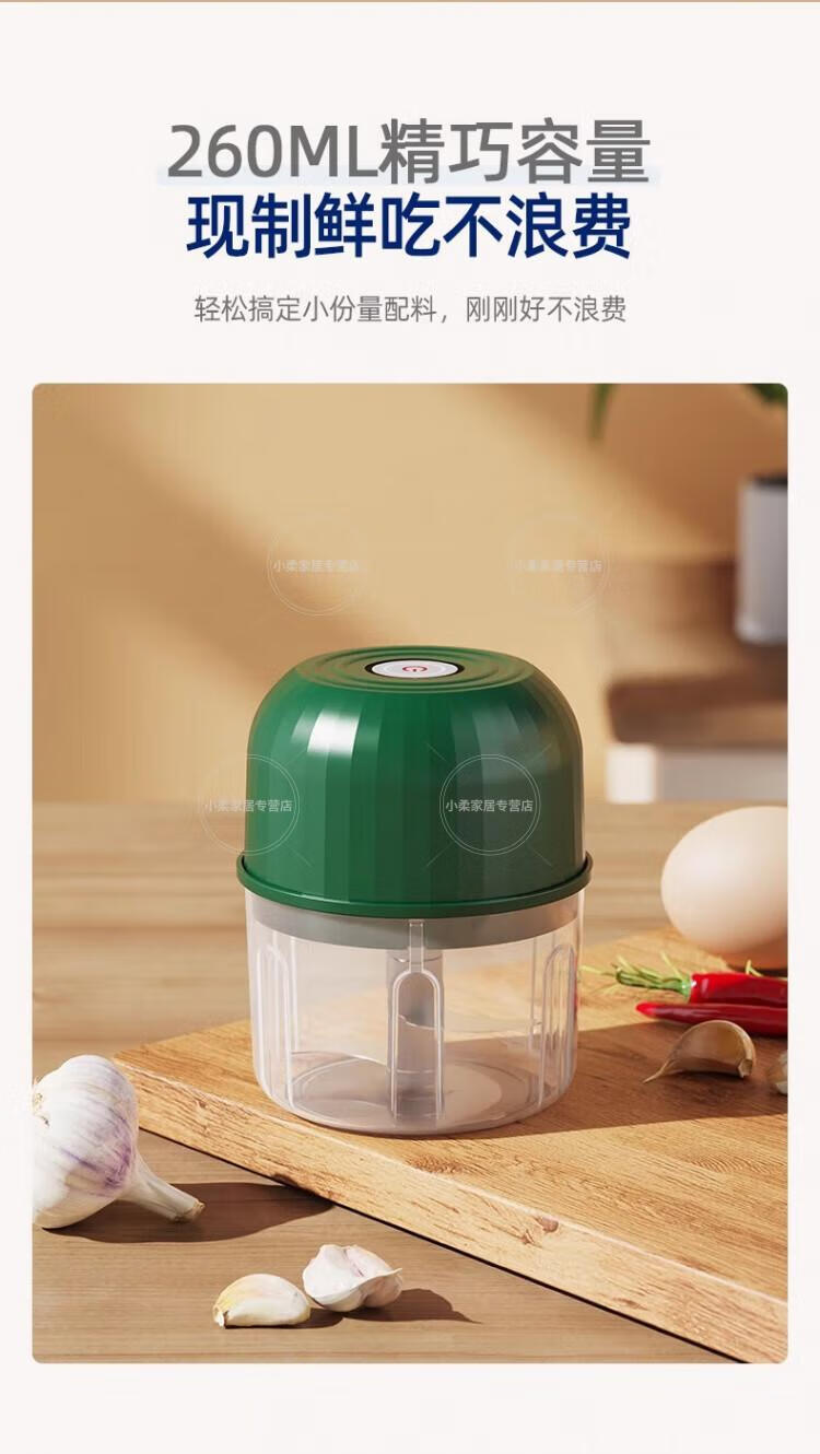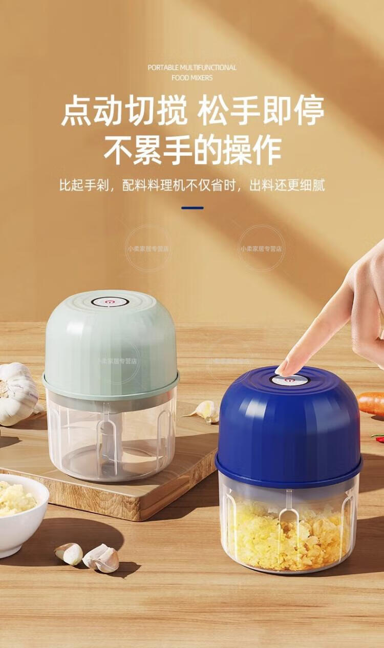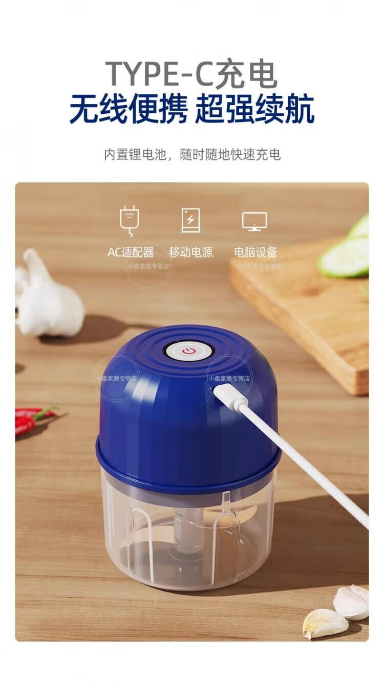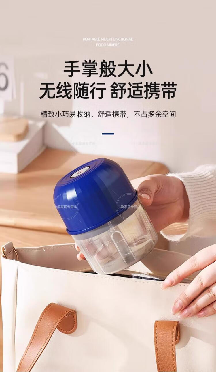 Wing Fantasy German Brand Cordless Electric Garlic Dip Dip Small Home Kitchen Electric Garlic Crusher Sapphire Blue-260ml-High Power