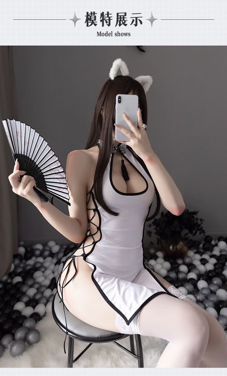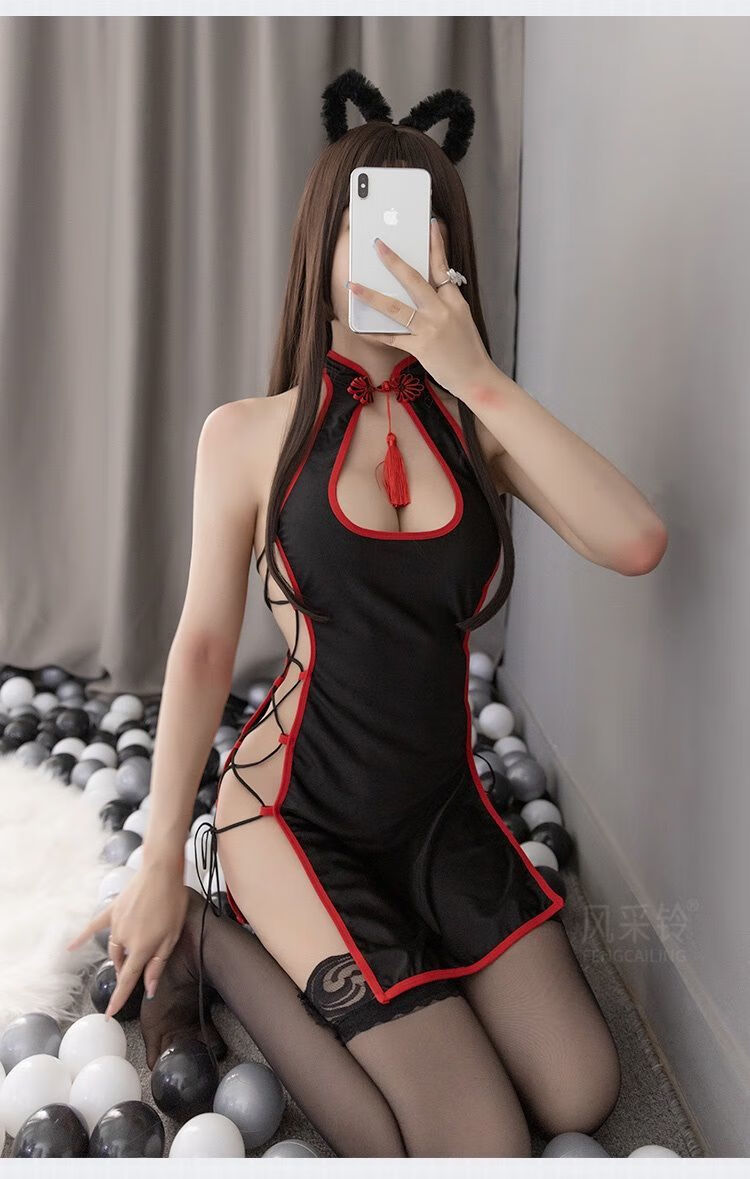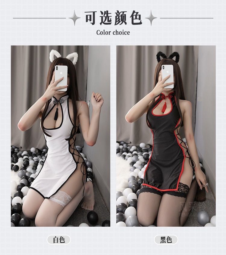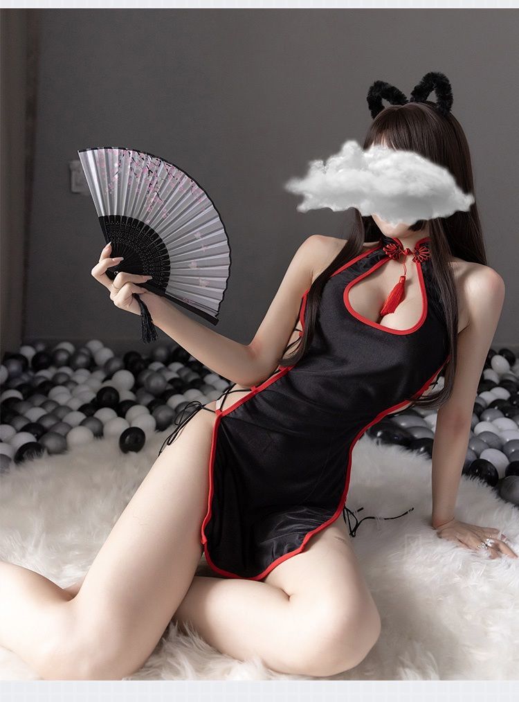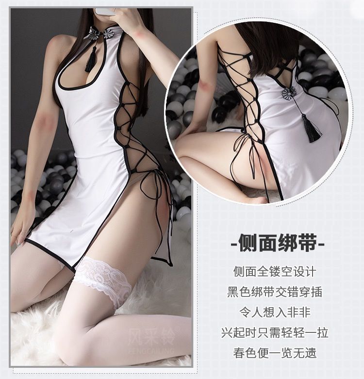 Guiruo sexy underwear jk suit SM thong alternative sexy SM maid adult bundle patent leather three black cheongsam + thong