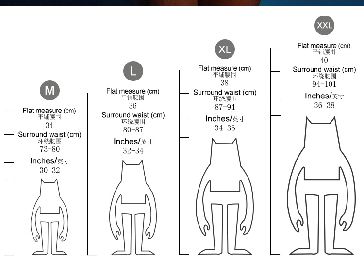 USA(inch) 28-30 30-32 32-34 34-38 38-42