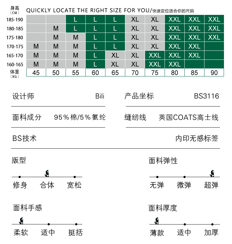 China (cm) 165 / 88-90 170 / 96-98 175 / 108-110 180 / 118-122 185 / 126-130