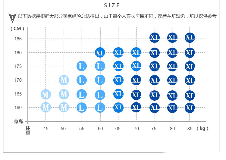 China (cm) 160-165/84-86 165-170 / 88-90 167-172 / 92-96 168-173 / 98-102 170-176 / 106-110