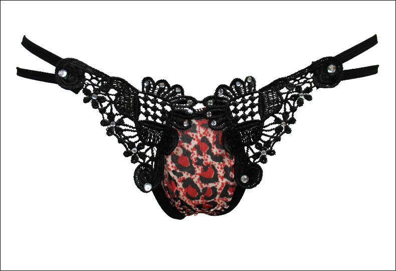 Sexy panties leopard print sexy thong seductive charming lace transparent hollow women's low waist red one size