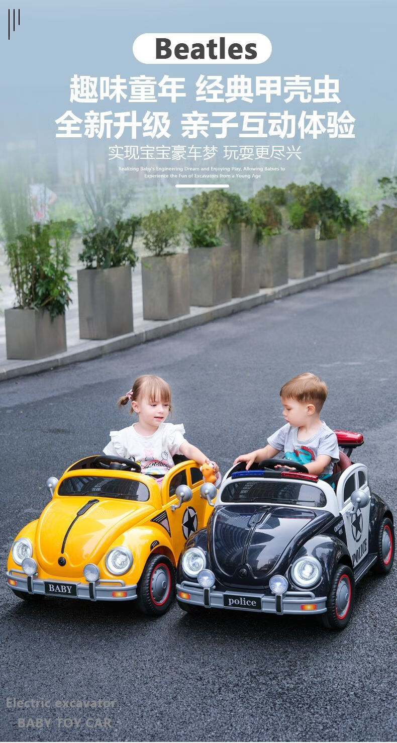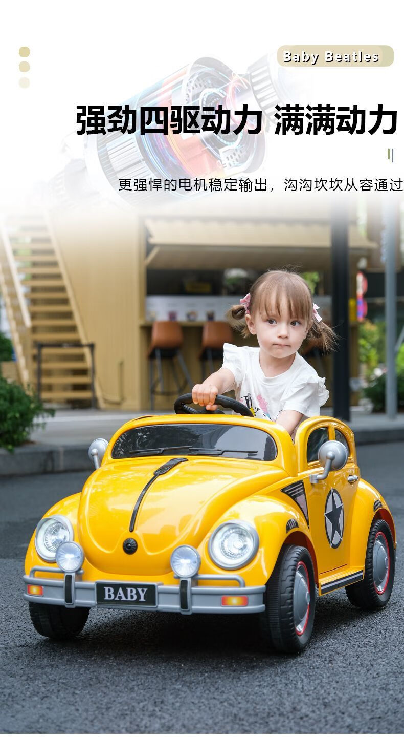Youxiwa children's electric car four-wheel car male and female baby remote control toy car swings and can sit 1-7 year old boys, four-wheel drive yellow, 12V7A large battery + leather seat