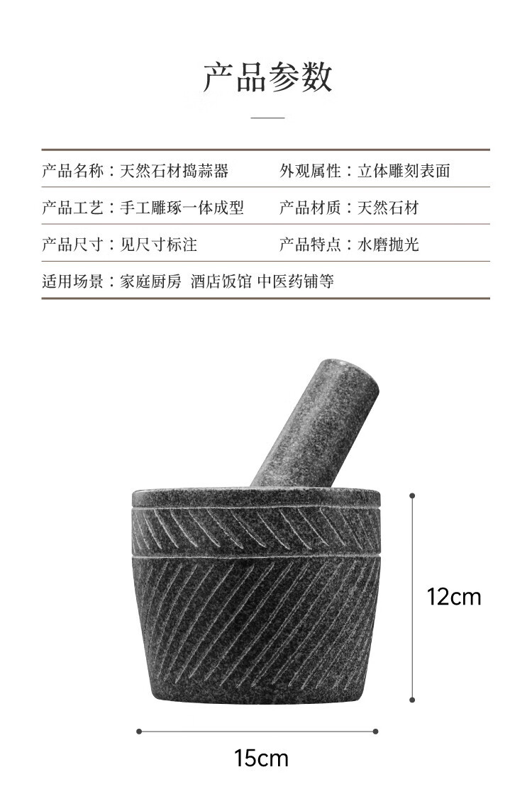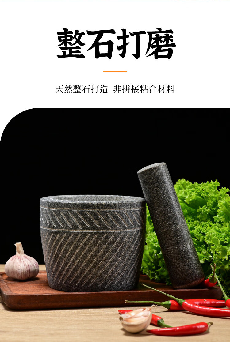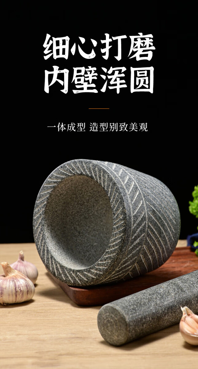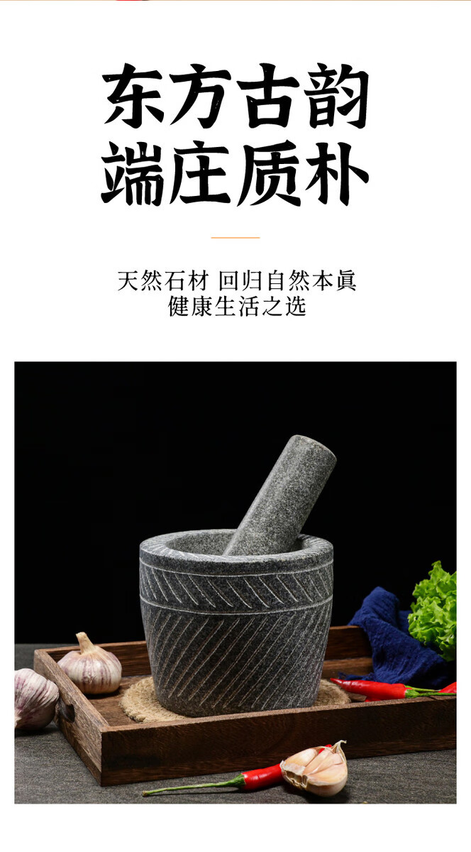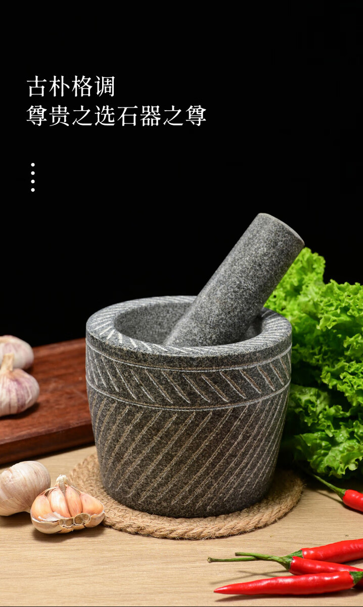 Pupan handmade stone mortar grinder Household large garlic press Pounding jar Carved garlic press Large handmade cylinder-shaped carving with stone hammer