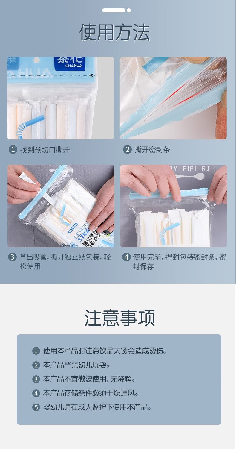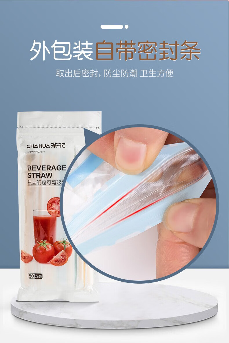 Camellia (CHAHUA) Suitable for pregnant women and children. Disposable individually packaged single elbow food-grade plastic straws and paper straws. Individually packaged 1 pack, 50 pieces in total.