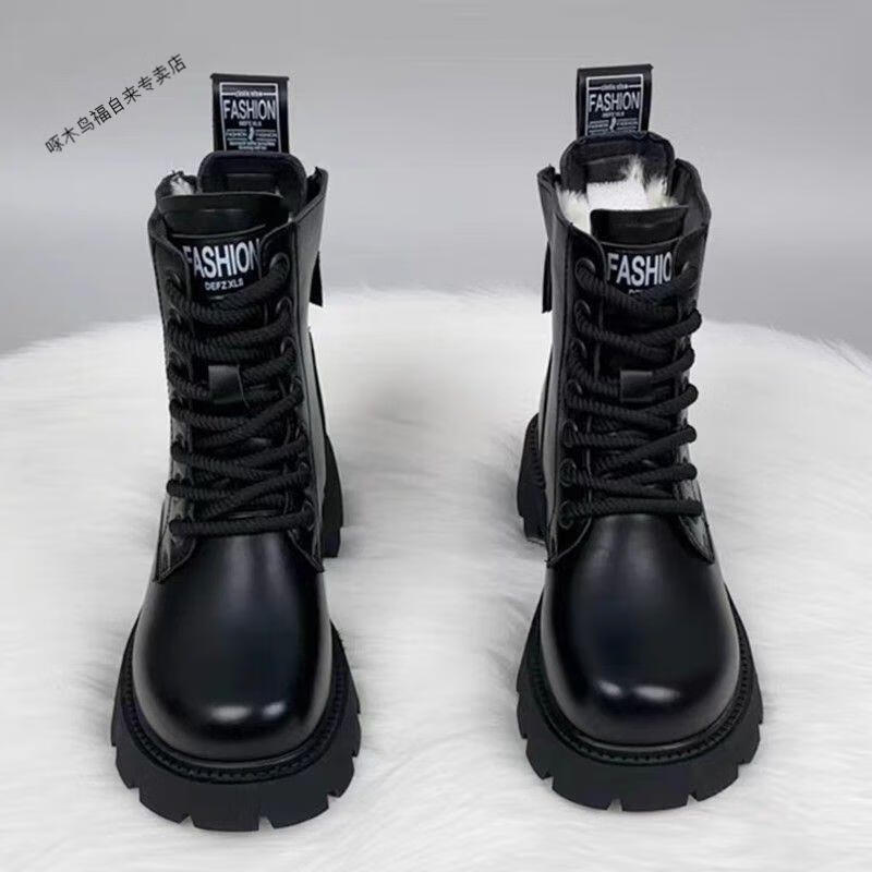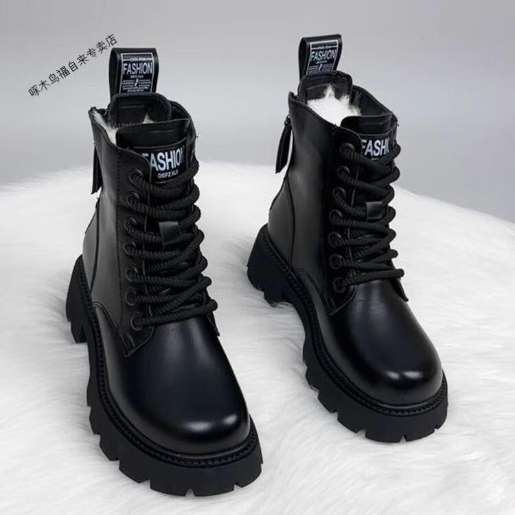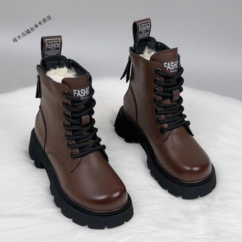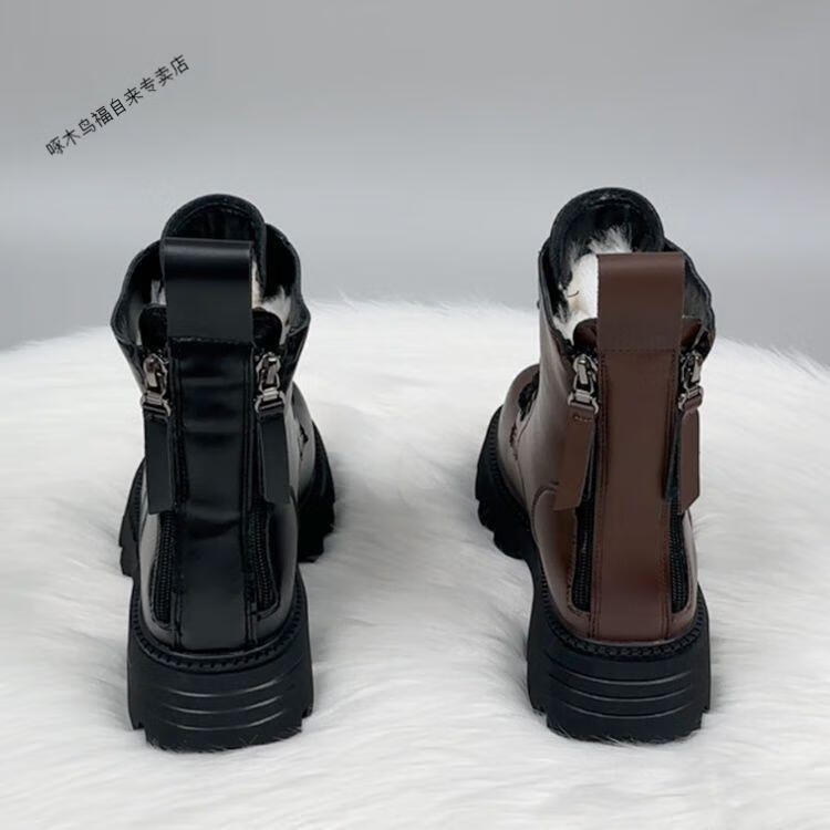 Woodpecker thick-soled Martin boots genuine leather wool boots women's fur integrated new thickened 2025 winter short boots snow boots black thickened cotton imported wool 37