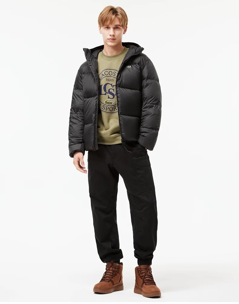 Crocodile French Crocodile Men's Fashion Trendy Casual Solid Color Hooded Duck Down Jacket | BH7841 Black L 52 (150-170Jin Jin equals 0.5kg)