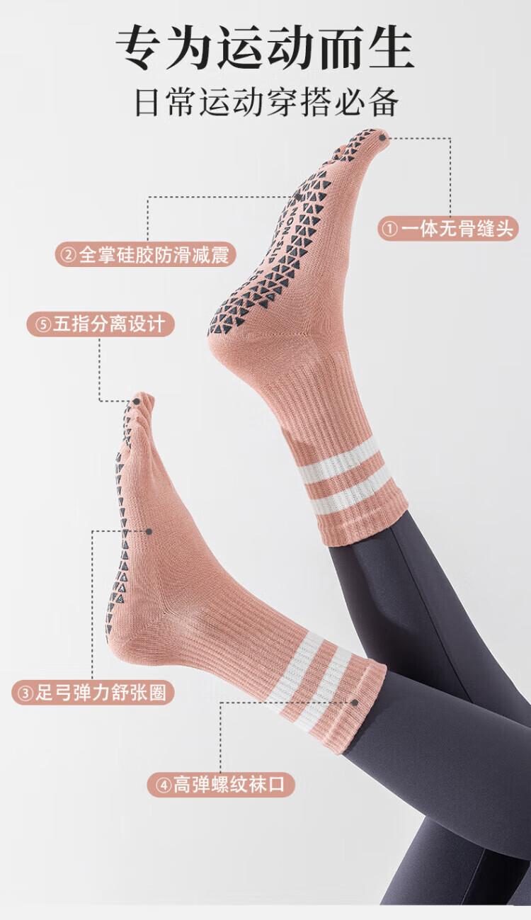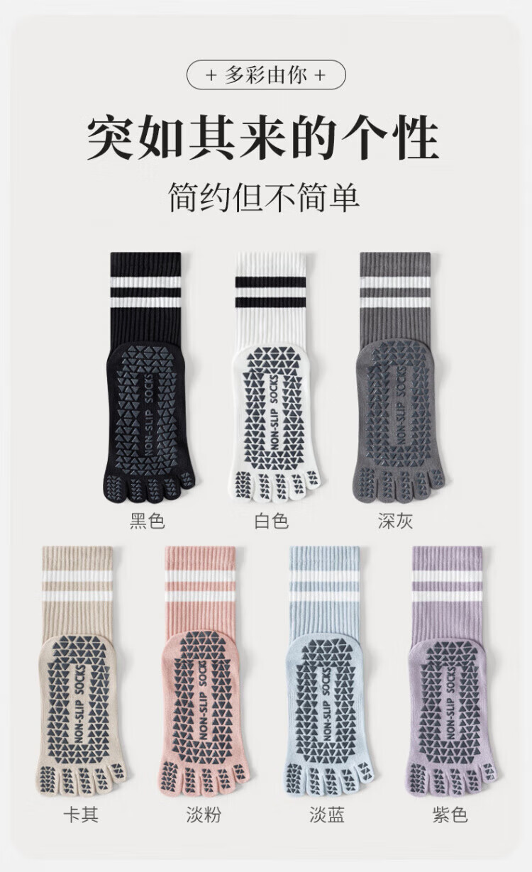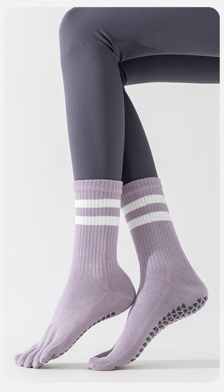 German high-quality yoga socks, five-finger non-slip, women's Pilates training, indoor sports, special fitness long tube toes, 1 pair, purple