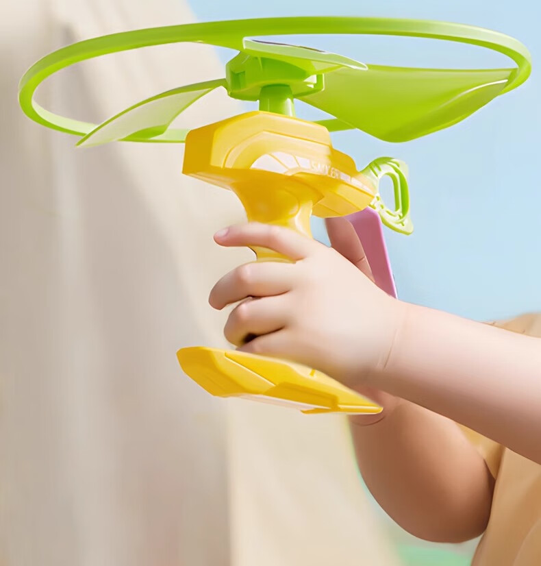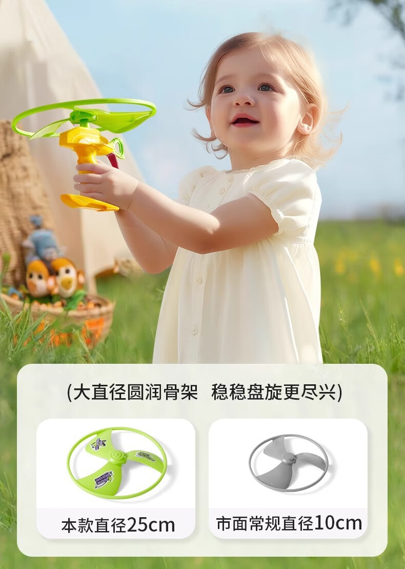 KESCOORL Children's Bamboo Dragonfly Hand-pulled Flying Saucer Ejection Rotating Frisbee Gyro for Outdoor Sports Bamboo Dragonfly + Badminton Racquet Upgraded Anti-Slip Handle