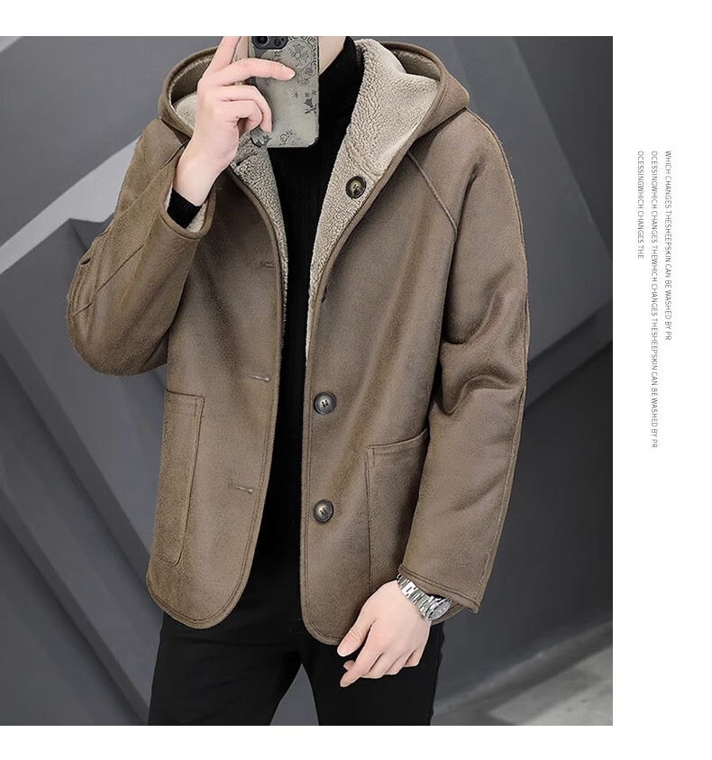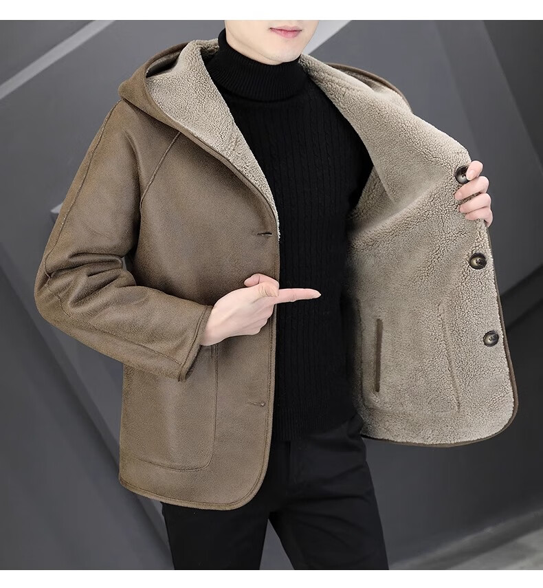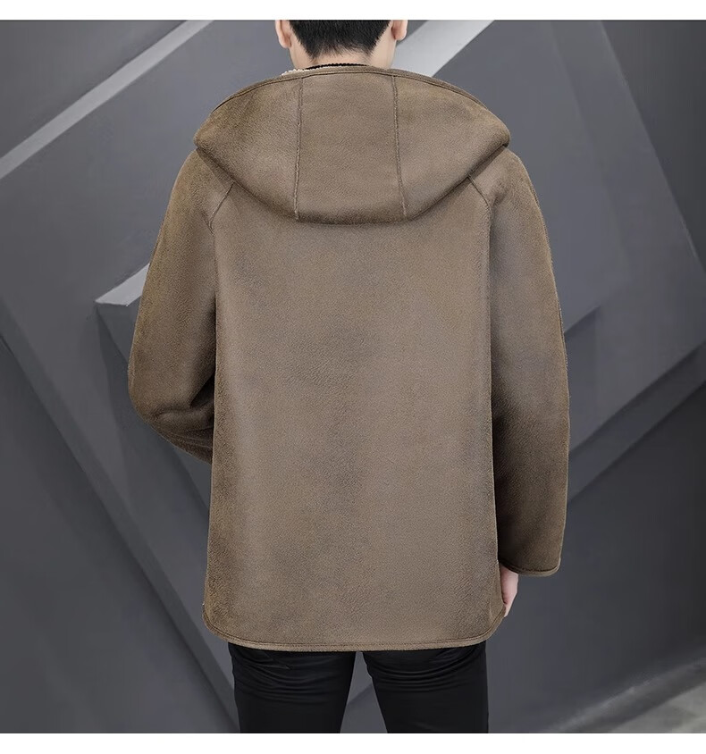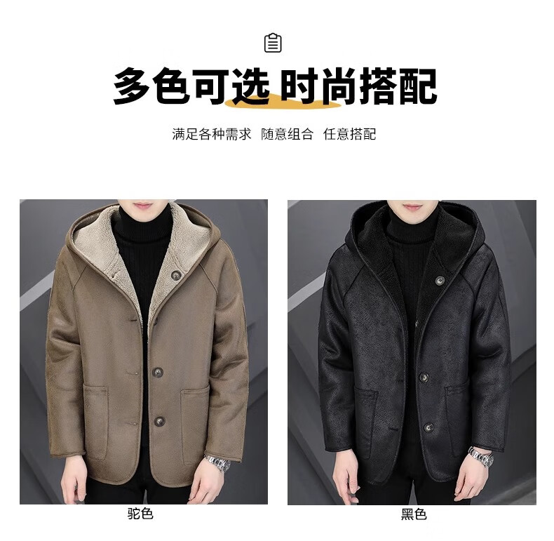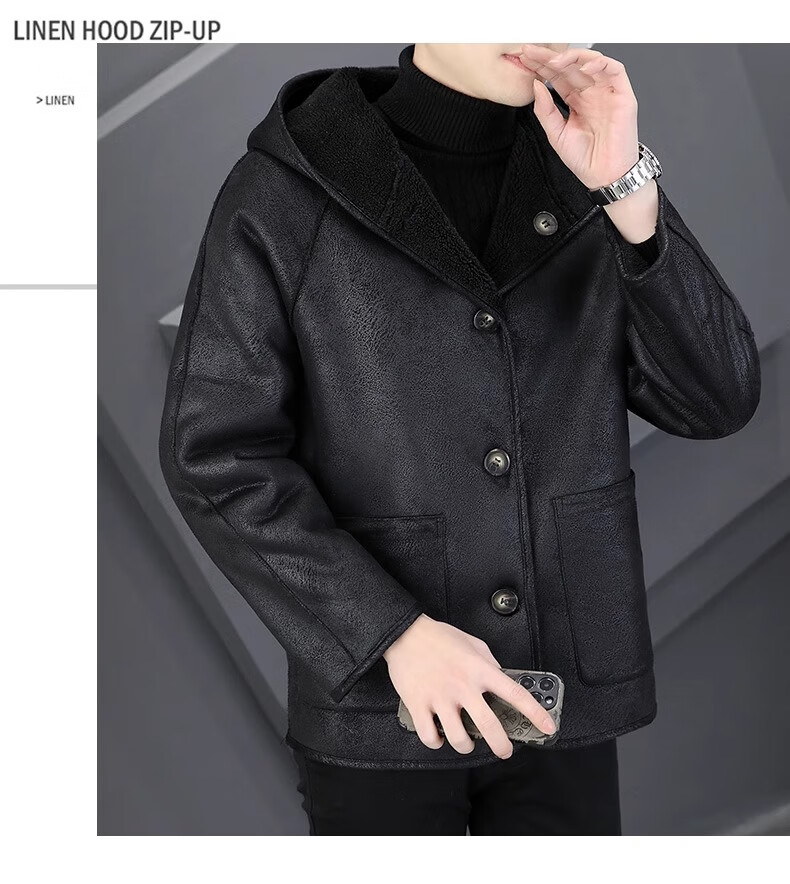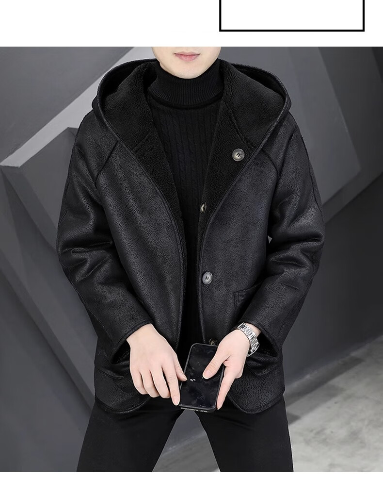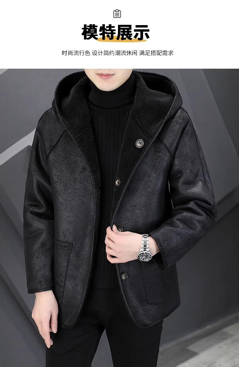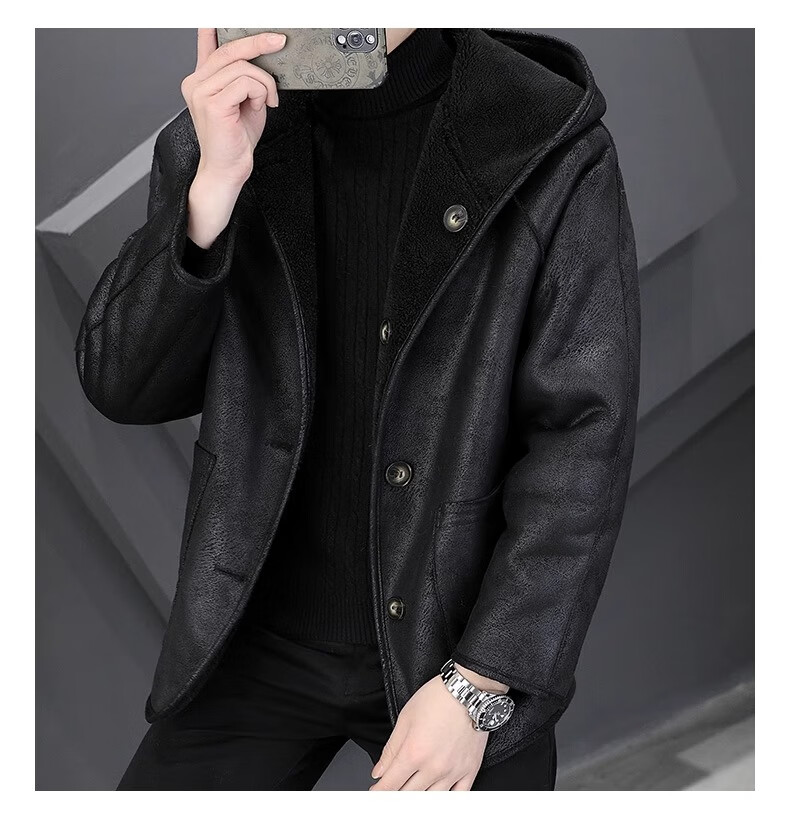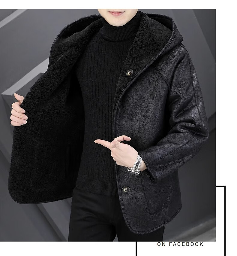 Playboy (PLAYBOY) Hooded Fur Grained Sheep Velvet Coated Fur One-piece Jacket Men's Thickened Reversible Shearling Leather Jacket Black (Reversible) 3XL Approximately 150-170Jin Jin is equal to 0.5 kg