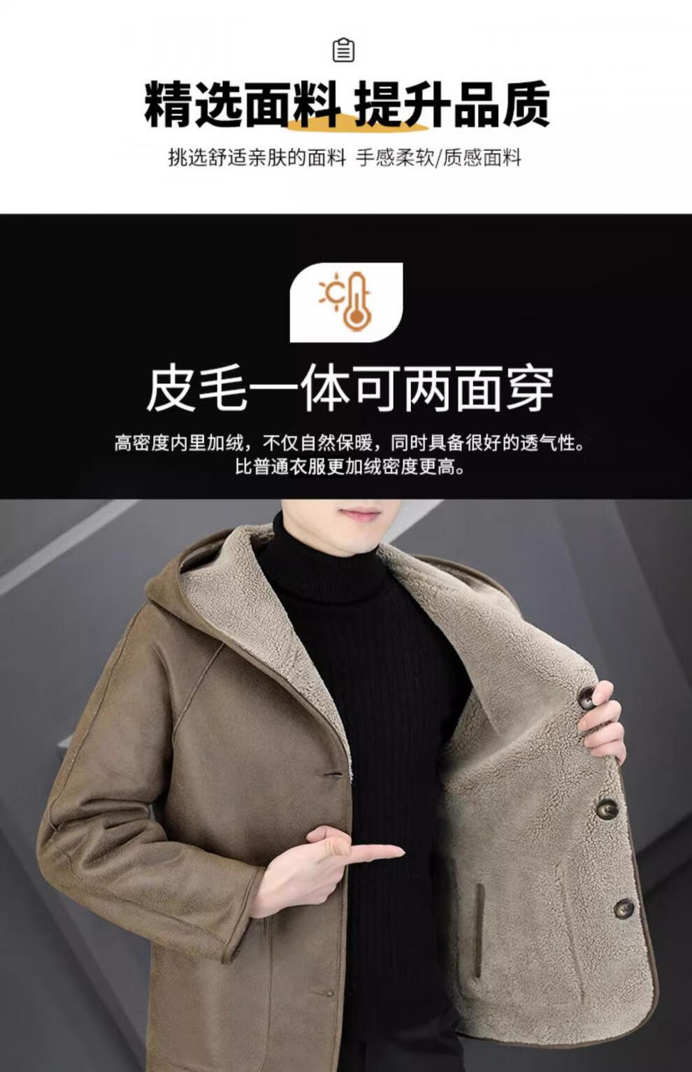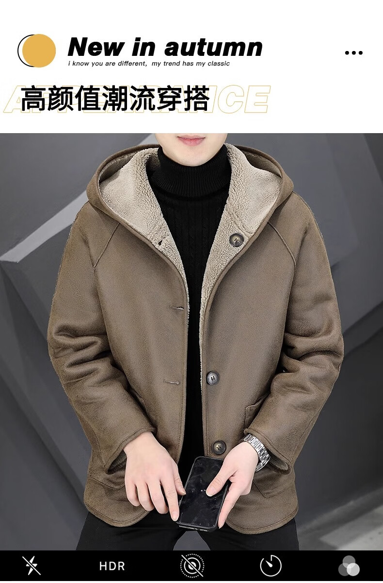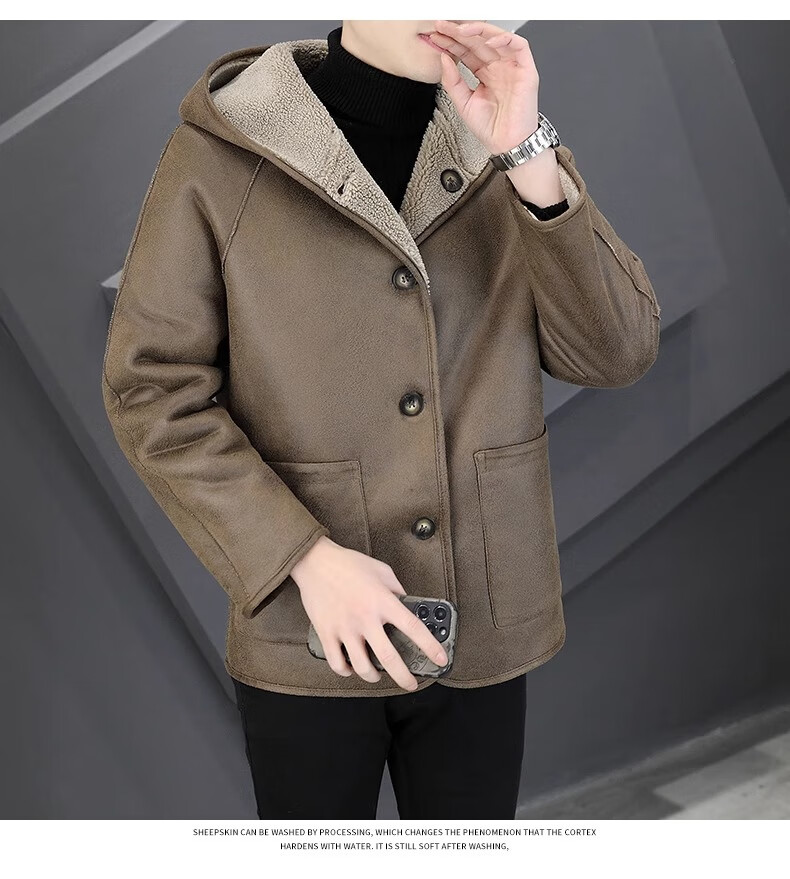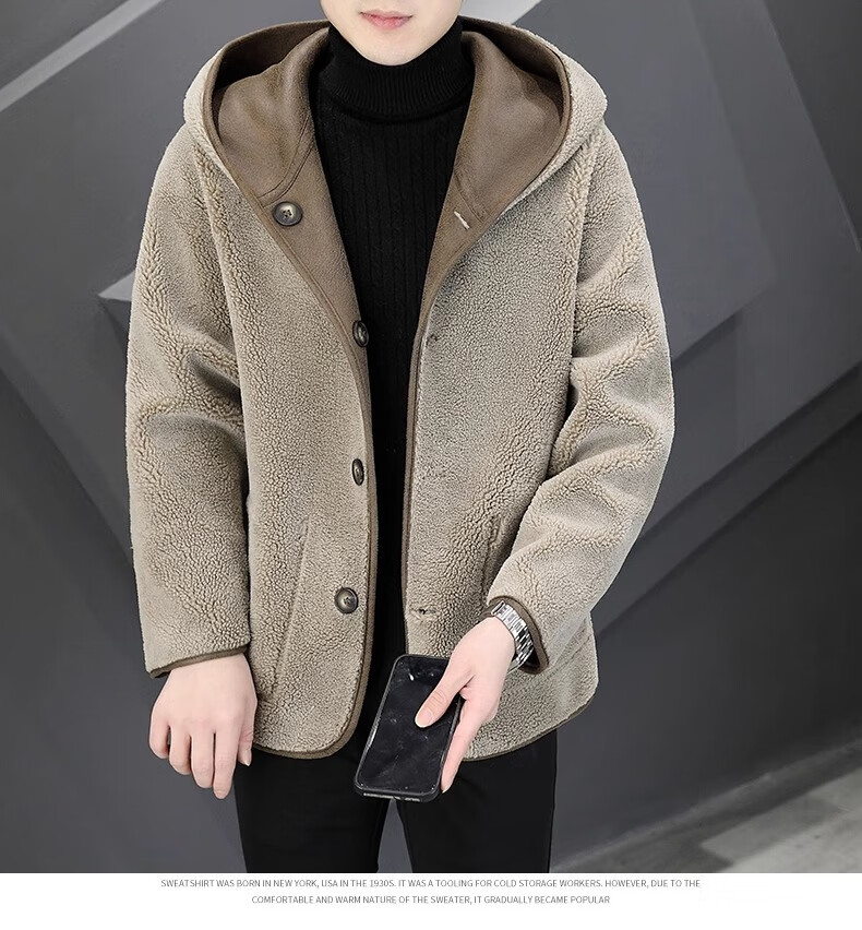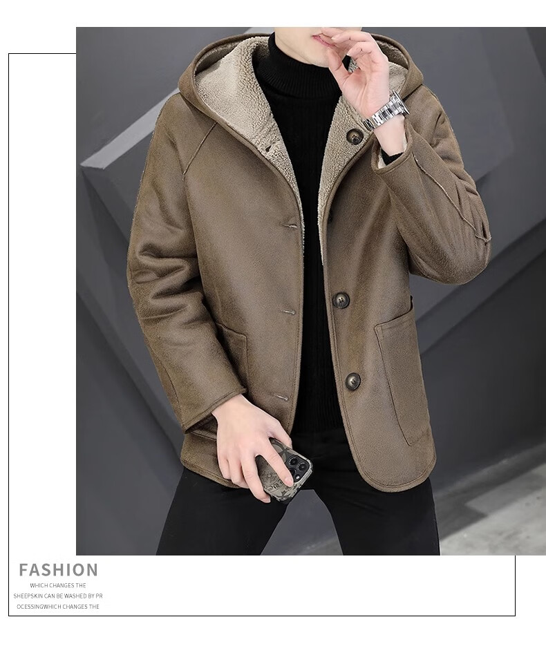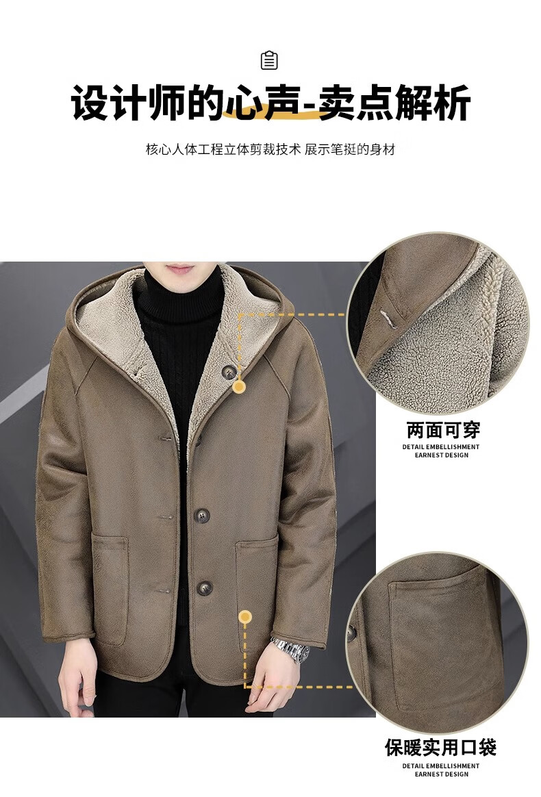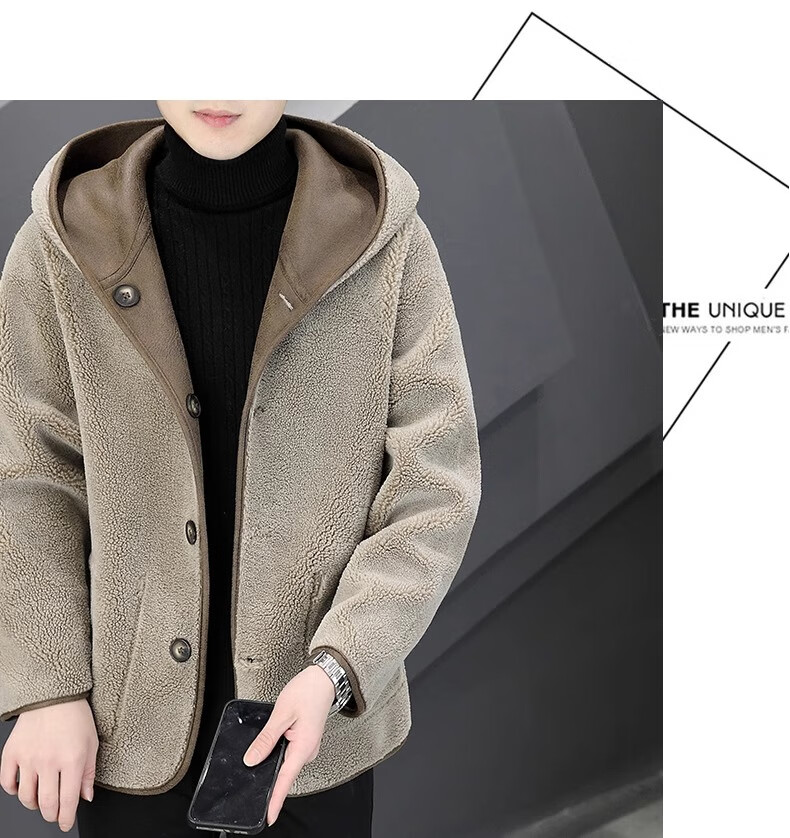 Playboy (PLAYBOY) Hooded Fur Grained Sheep Velvet Coated Fur One-piece Jacket Men's Thickened Reversible Shearling Leather Jacket Black (Reversible) 3XL Approximately 150-170Jin Jin is equal to 0.5 kg