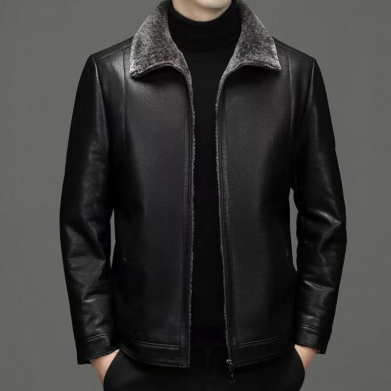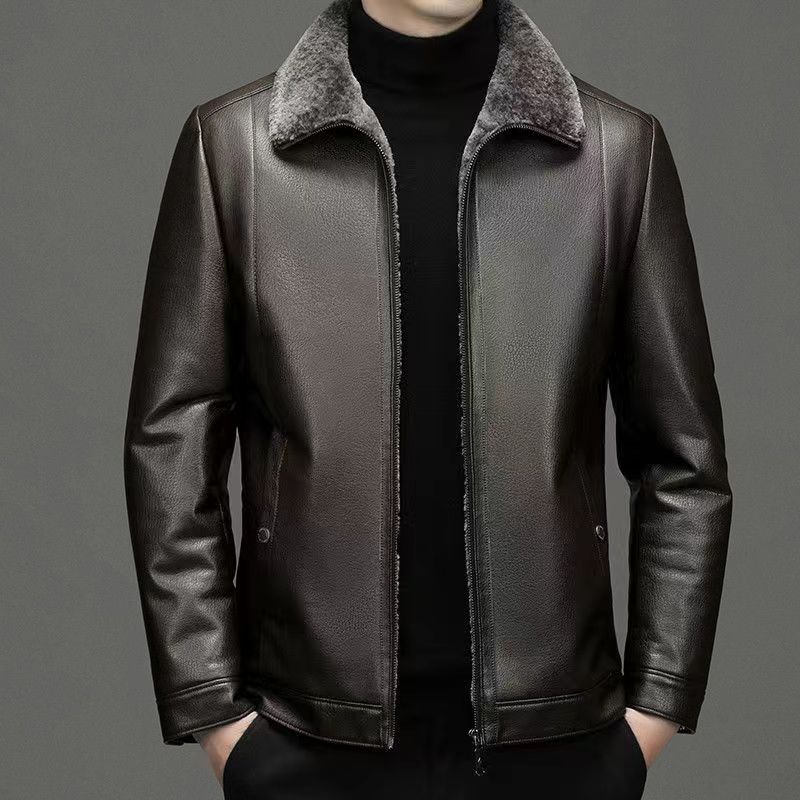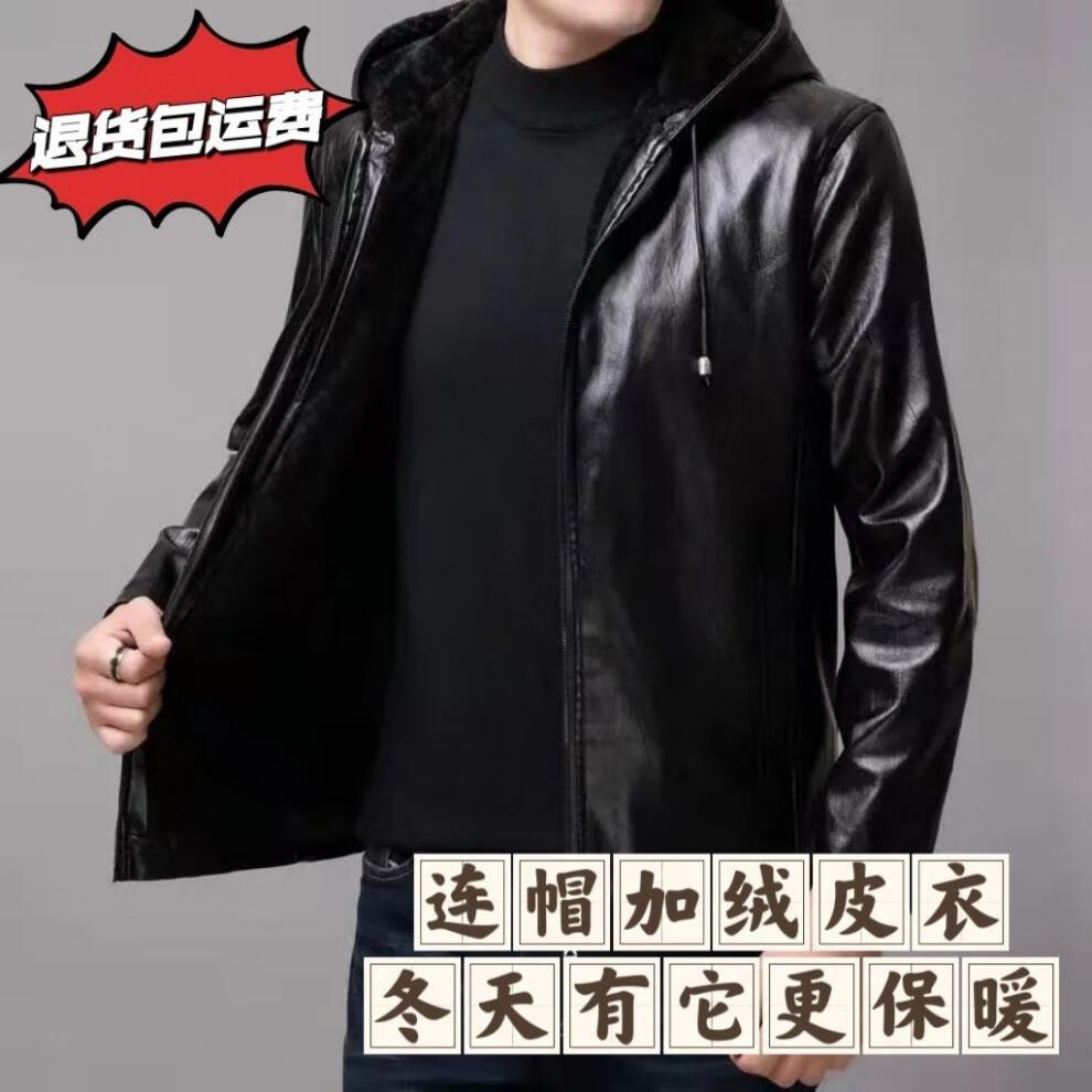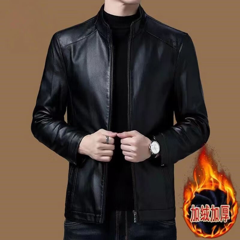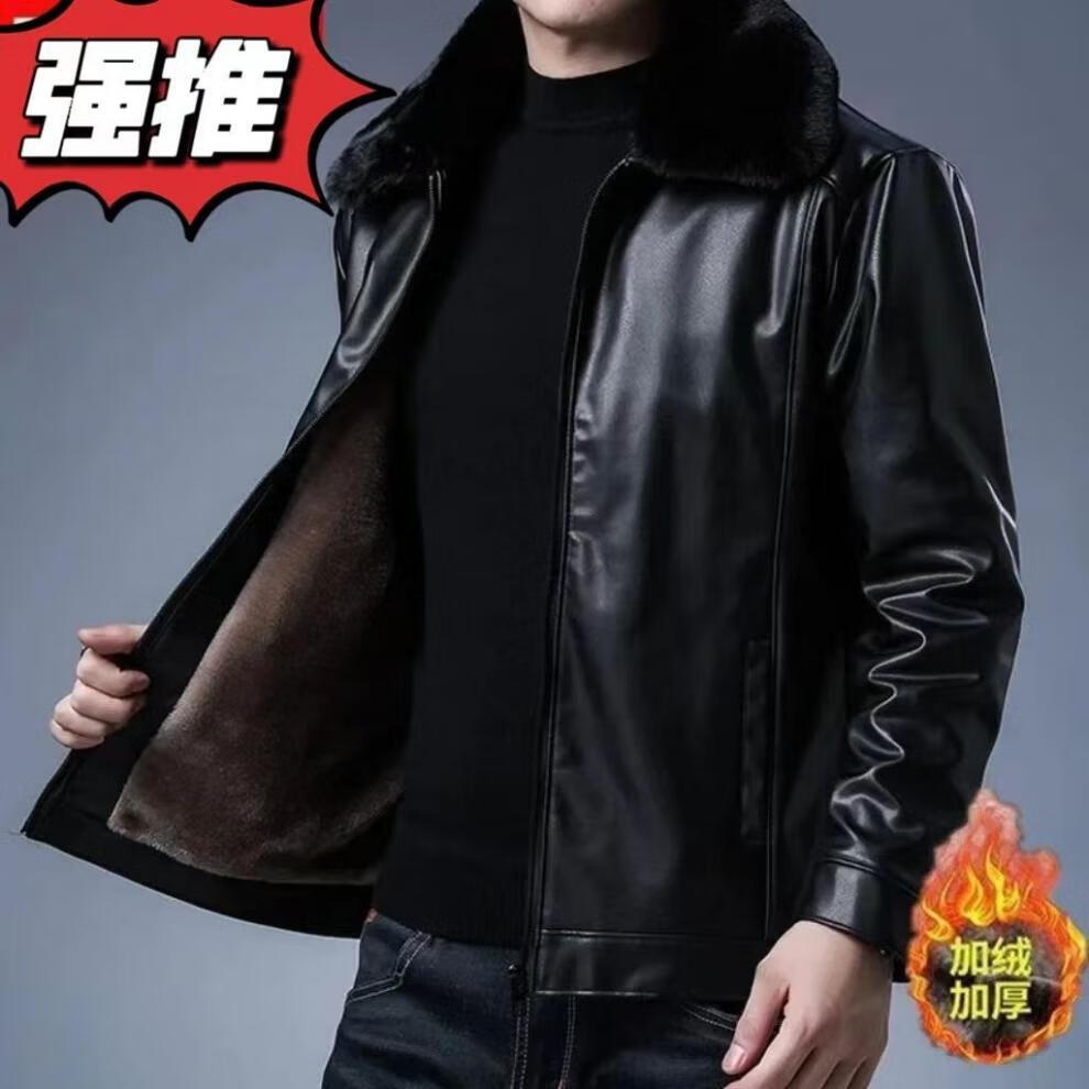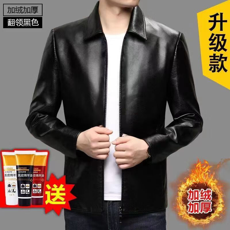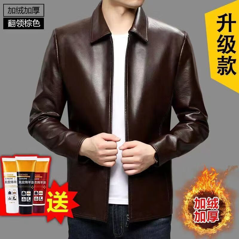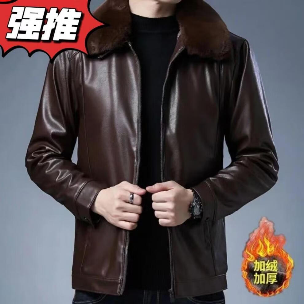 Playboy Haining Men's Leather Jacket Velvet Men's Leather Jacket Winter Leather Jacket Men's Young and Middle-aged Warm Jacket Men's Jacket Velvet Lapel Brown Free Maintenance Oil XL 180/96A (130-150Jin Jin is equal to 0.5 kg)