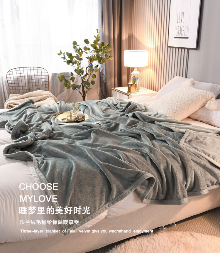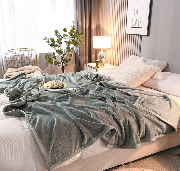 Pupan winter milk velvet bed sheet thickened baby velvet flannel coral velvet dormitory single and double blankets to keep warm, fog blue 90x100cm office knee, double-sided velvet 3 seconds quick heating
