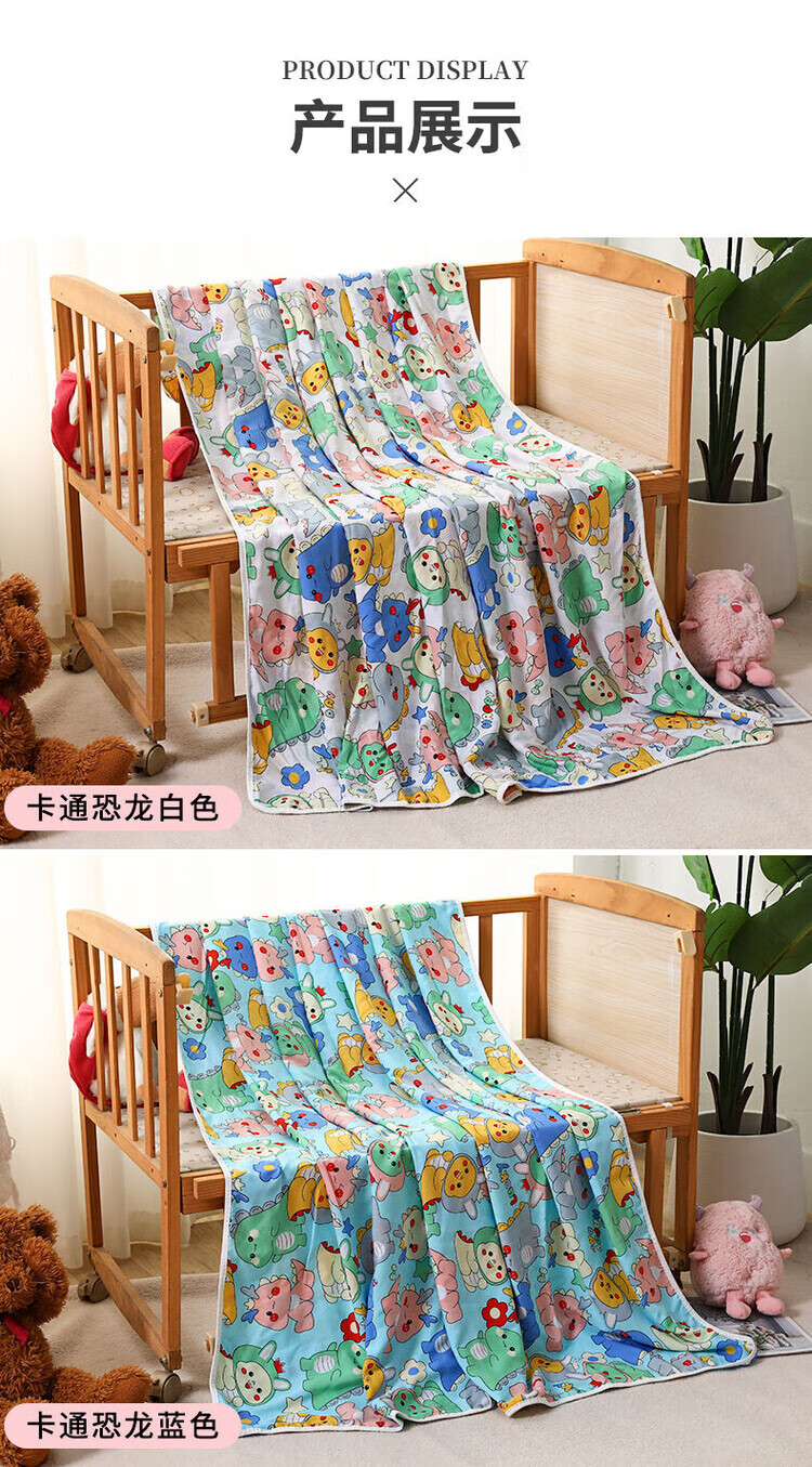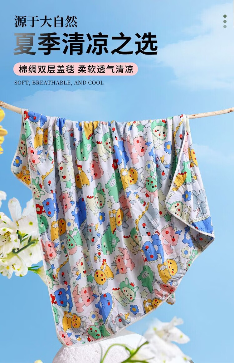 RSRDDY cotton silk summer cool quilt quilt summer cool quilt baby thin blanket summer kindergarten quilt summer baby artificial cotton cartoon dinosaur blue bottom 100x140cm-suitable for 1-3 years old