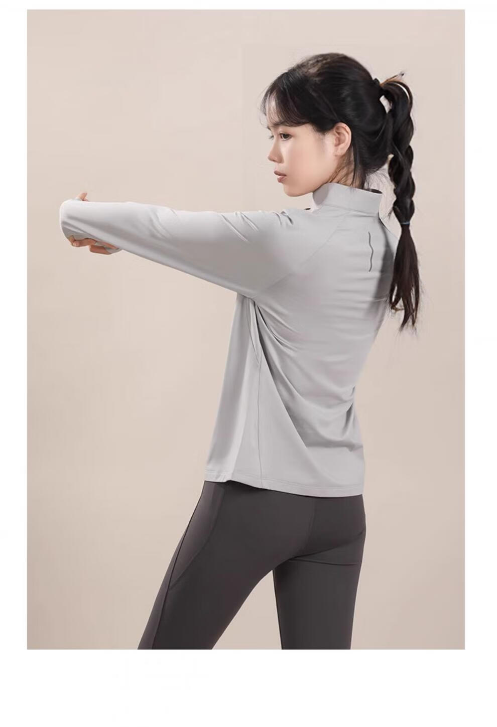 Quick-drying long-sleeved T-shirt for women, new velvet cycling top, running yoga fitness morning jogging bottoming shirt for women, cloud gray (thin velvet warm) 3XL