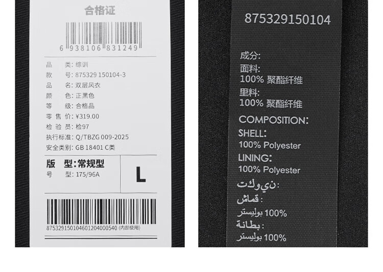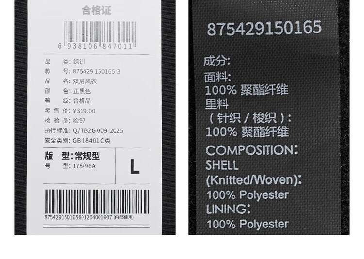 Sanqihu water-repellent top autumn and winter new men's jacket training suit outdoor cycling suit double-layer windbreaker sportswear 0106 regular-true black-classic and simple S S
