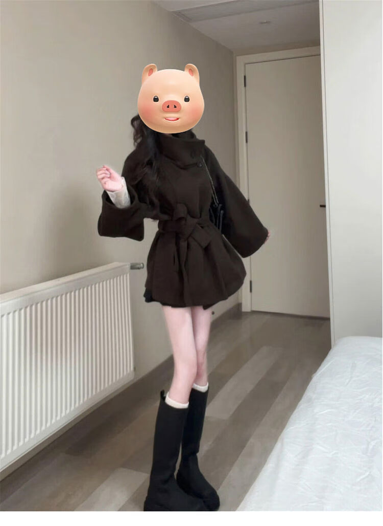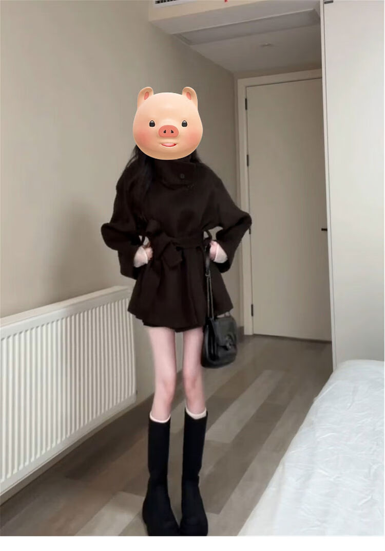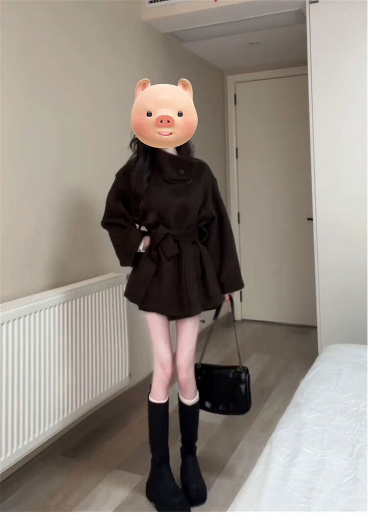 Meishubang Xiaohongshu popular Maillard wear stand-up collar short woolen jacket for women autumn and winter 2025 new style lace-up dark brown version S 4045kgS spot and quick delivery with free shipping insurance