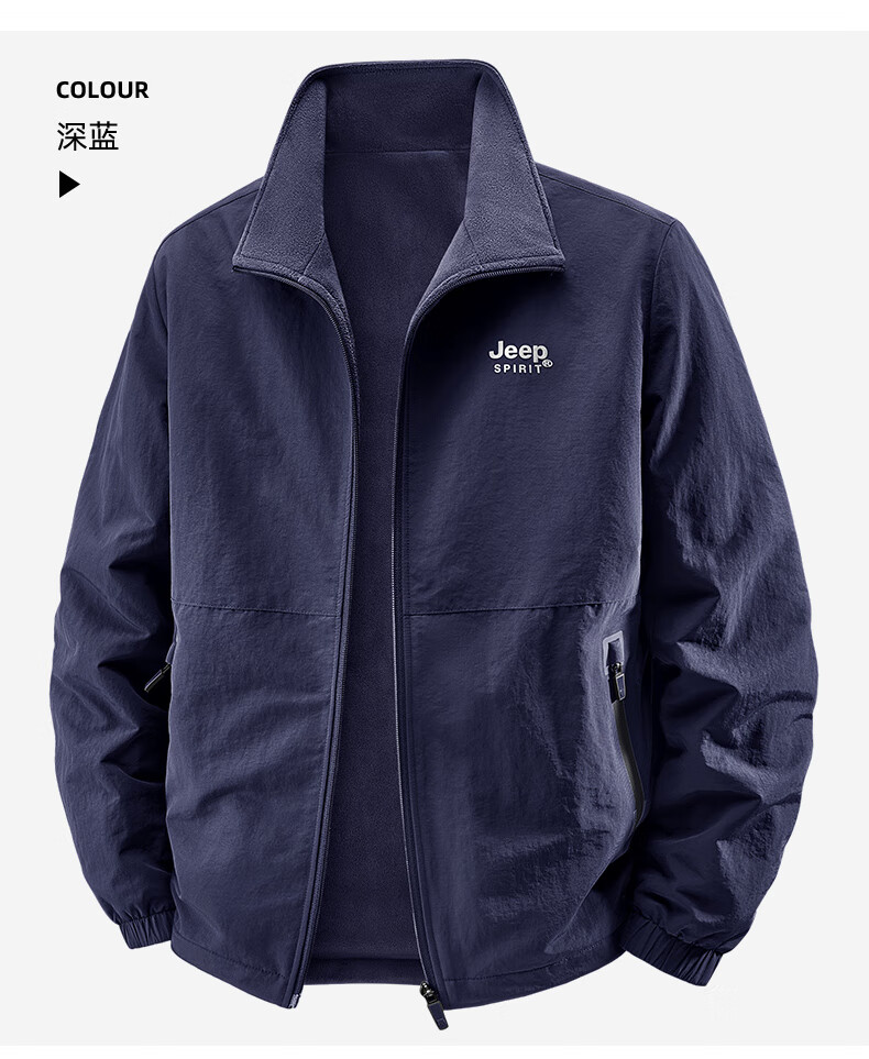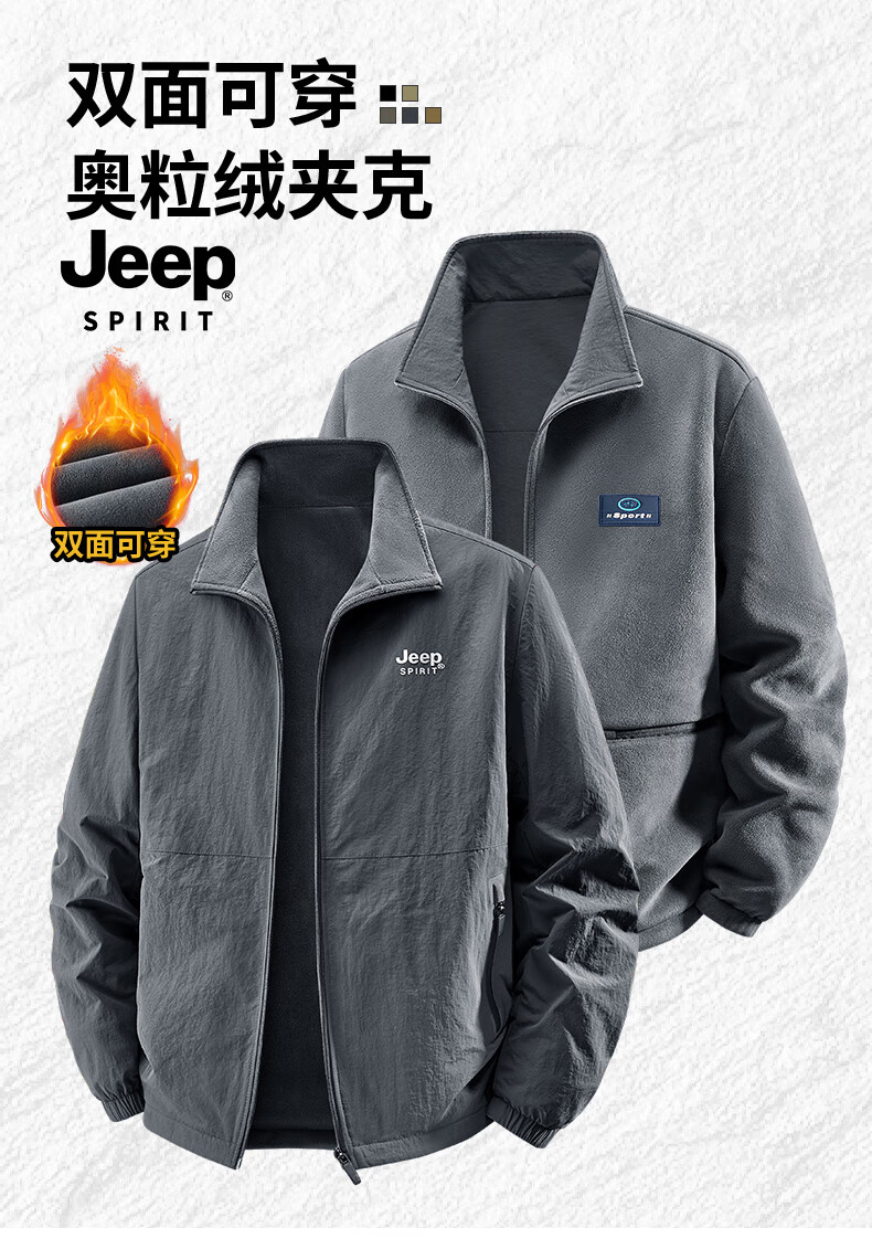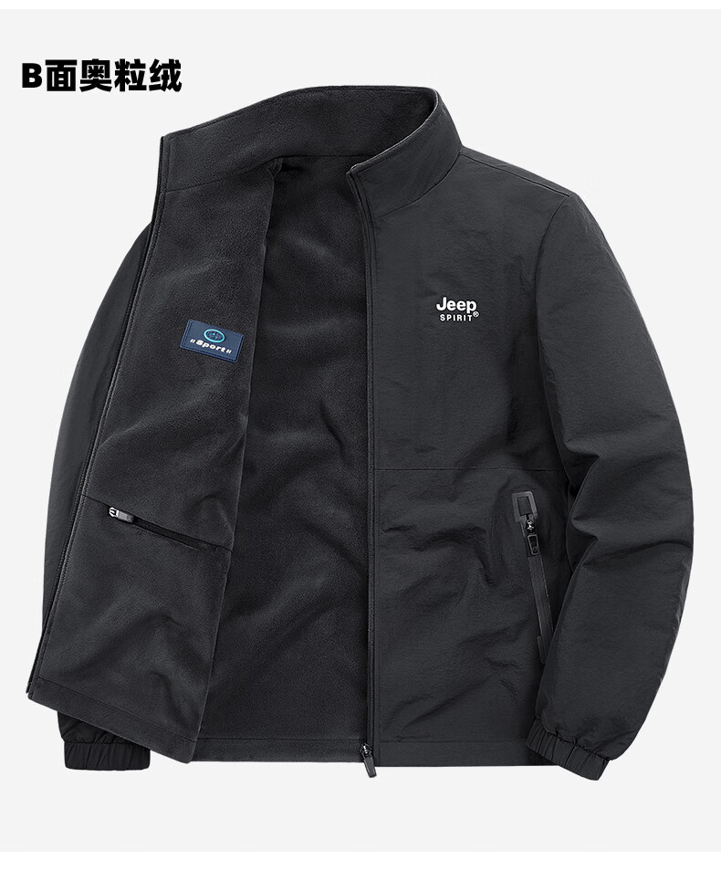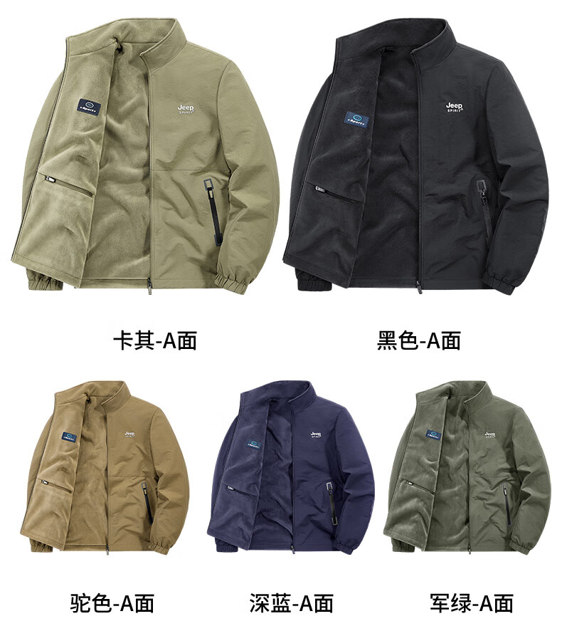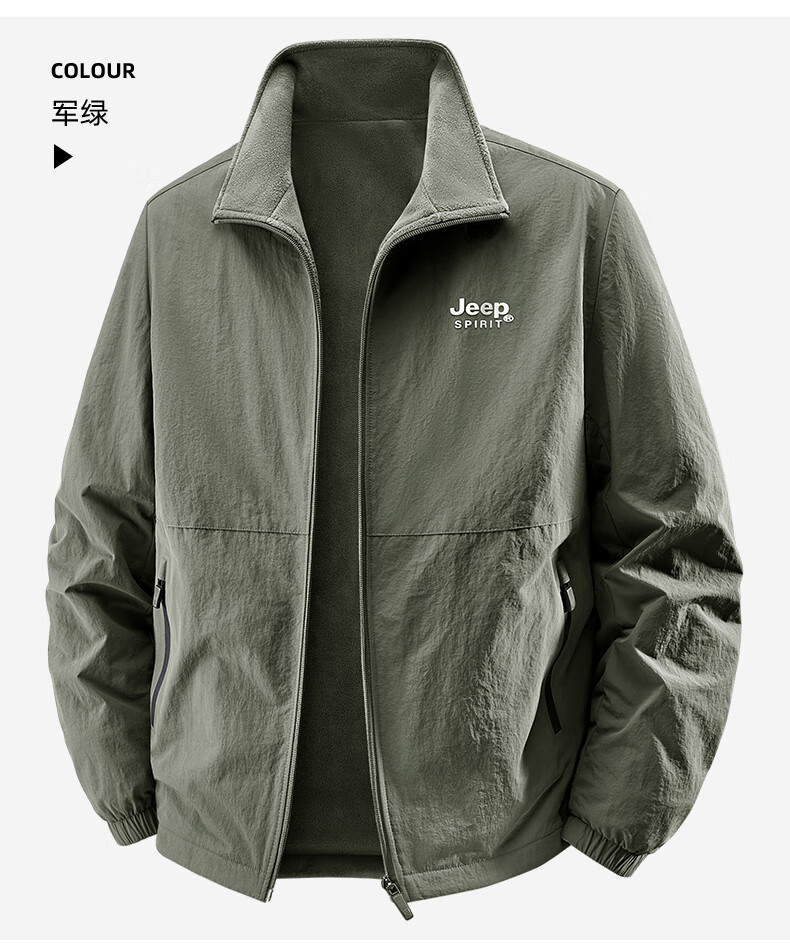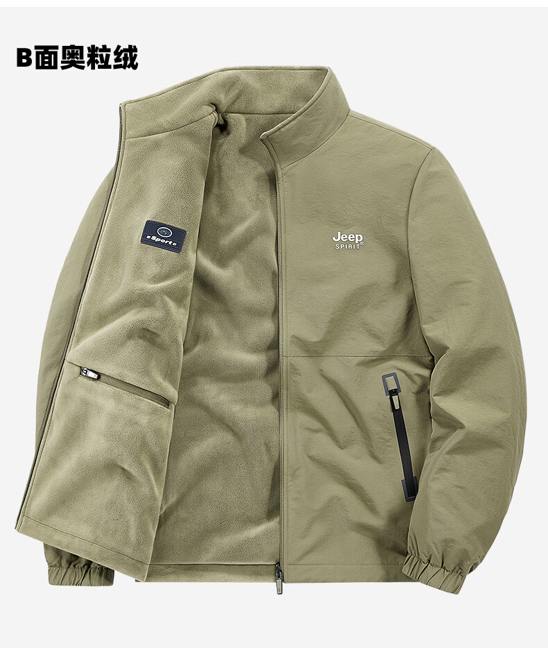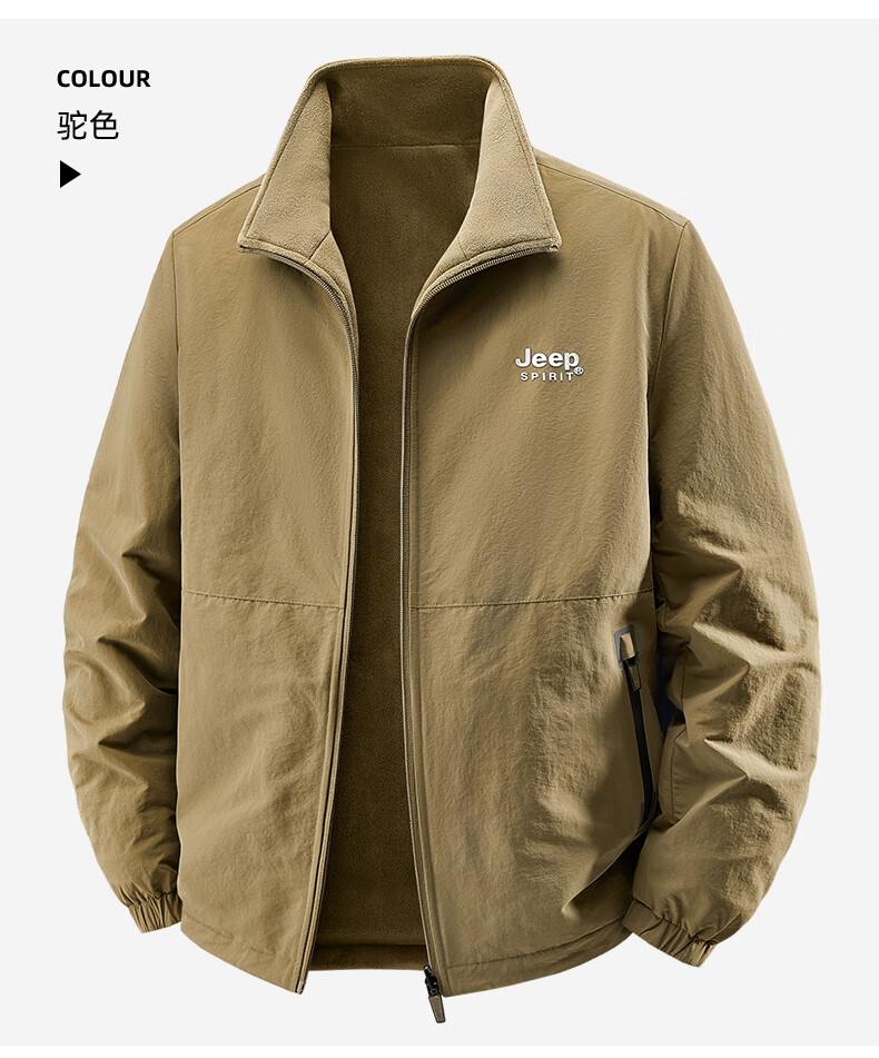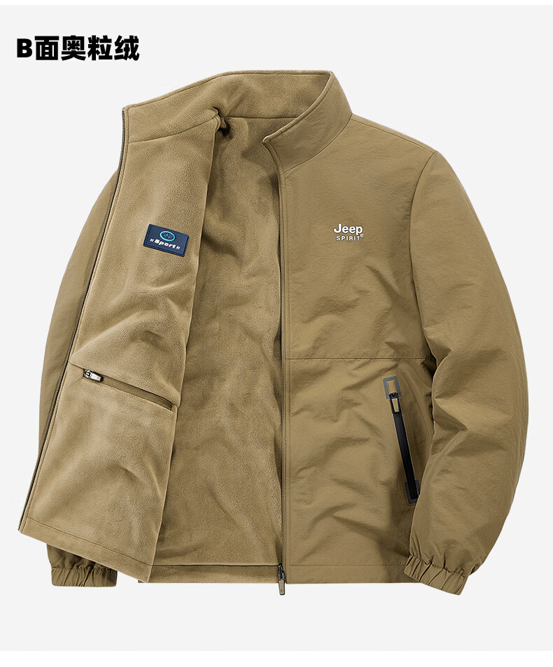 JEEP SPIRIT Jeep High-end Stand Collar Men's Jacket 2025 Autumn and Winter Plus Velvet Windbreaker Winter Casual Top Jacket Men Military Green M Wear 100-115 Jin Jin is equal to 0.5 kg