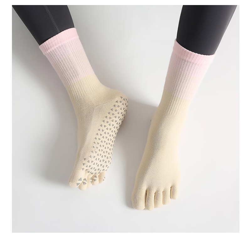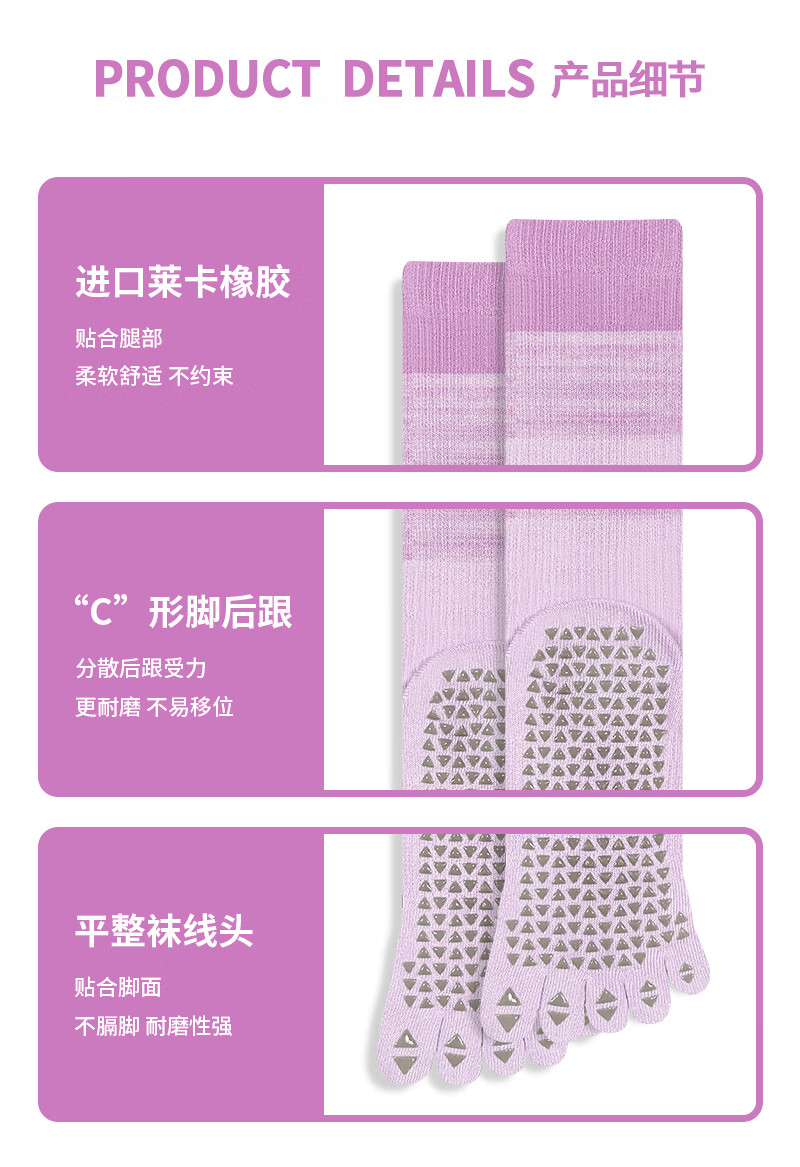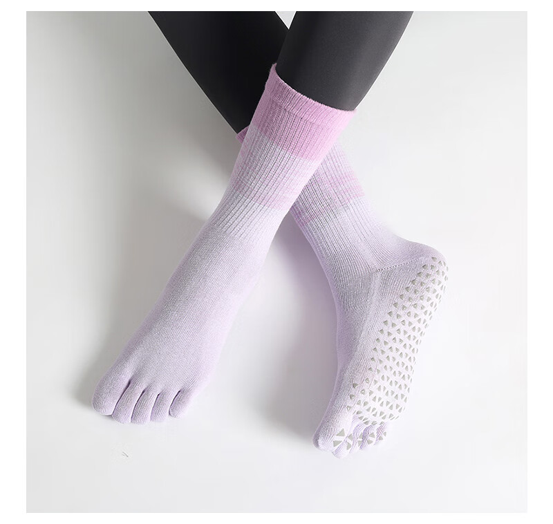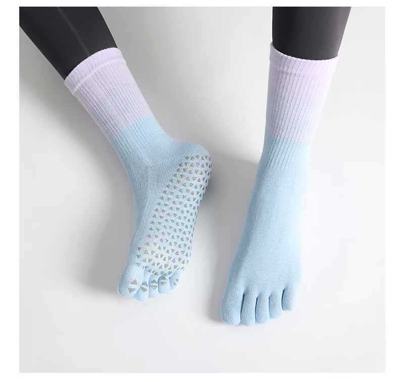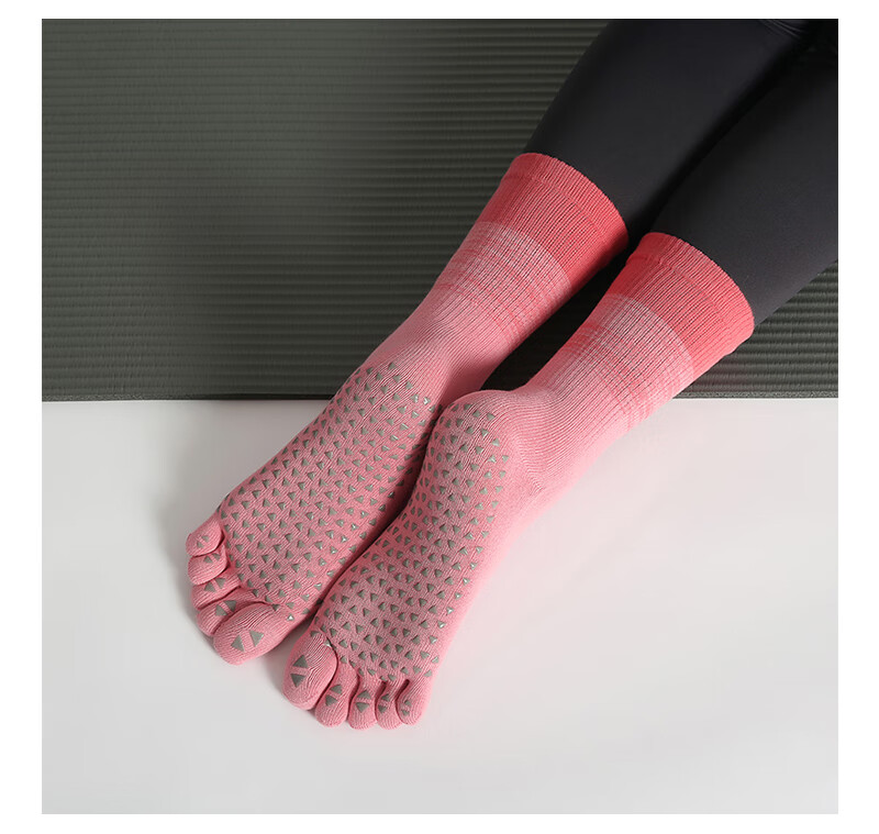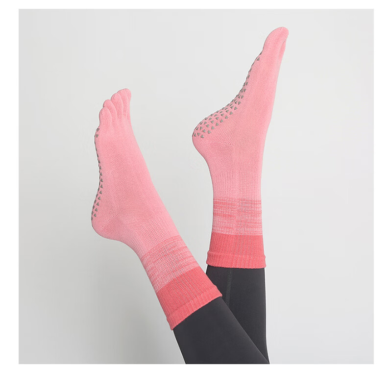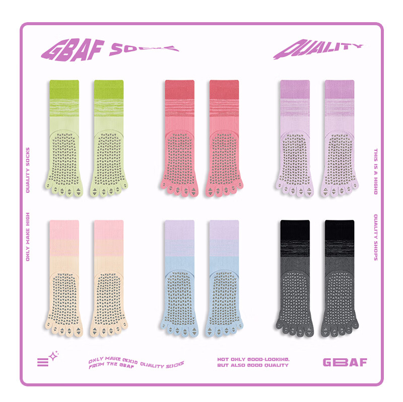 GBAF gradient non-slip yoga toe socks for sports and fitness Pilates special yoga split toe mid-calf socks for women green+red+purple blue_ Discount pack 3 pairs One size fits all (35-41)