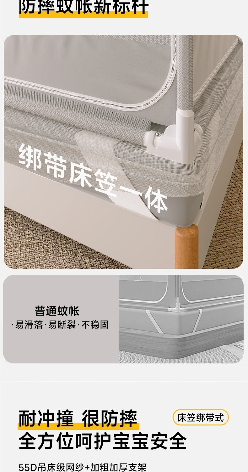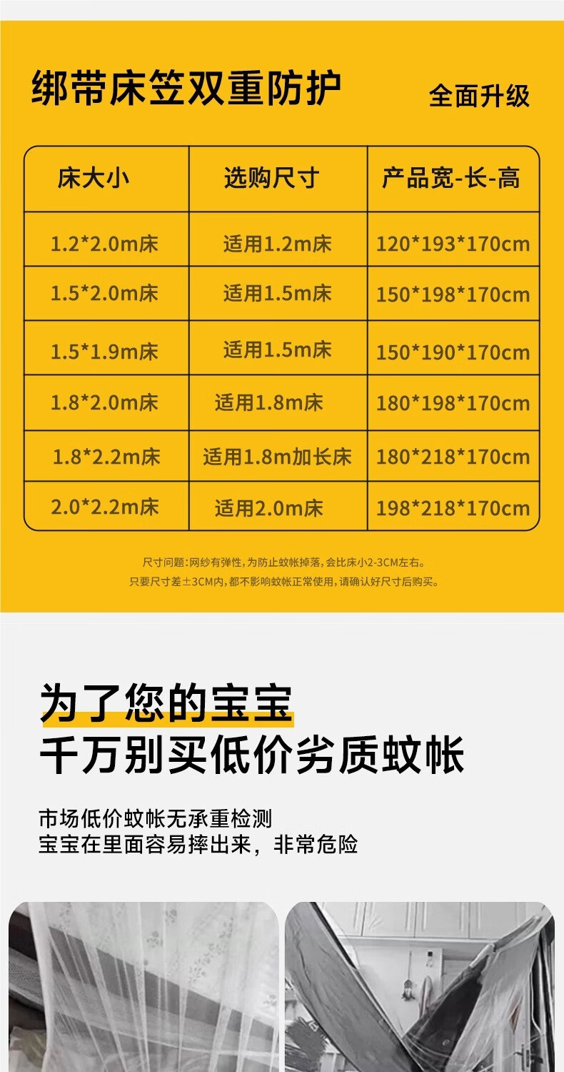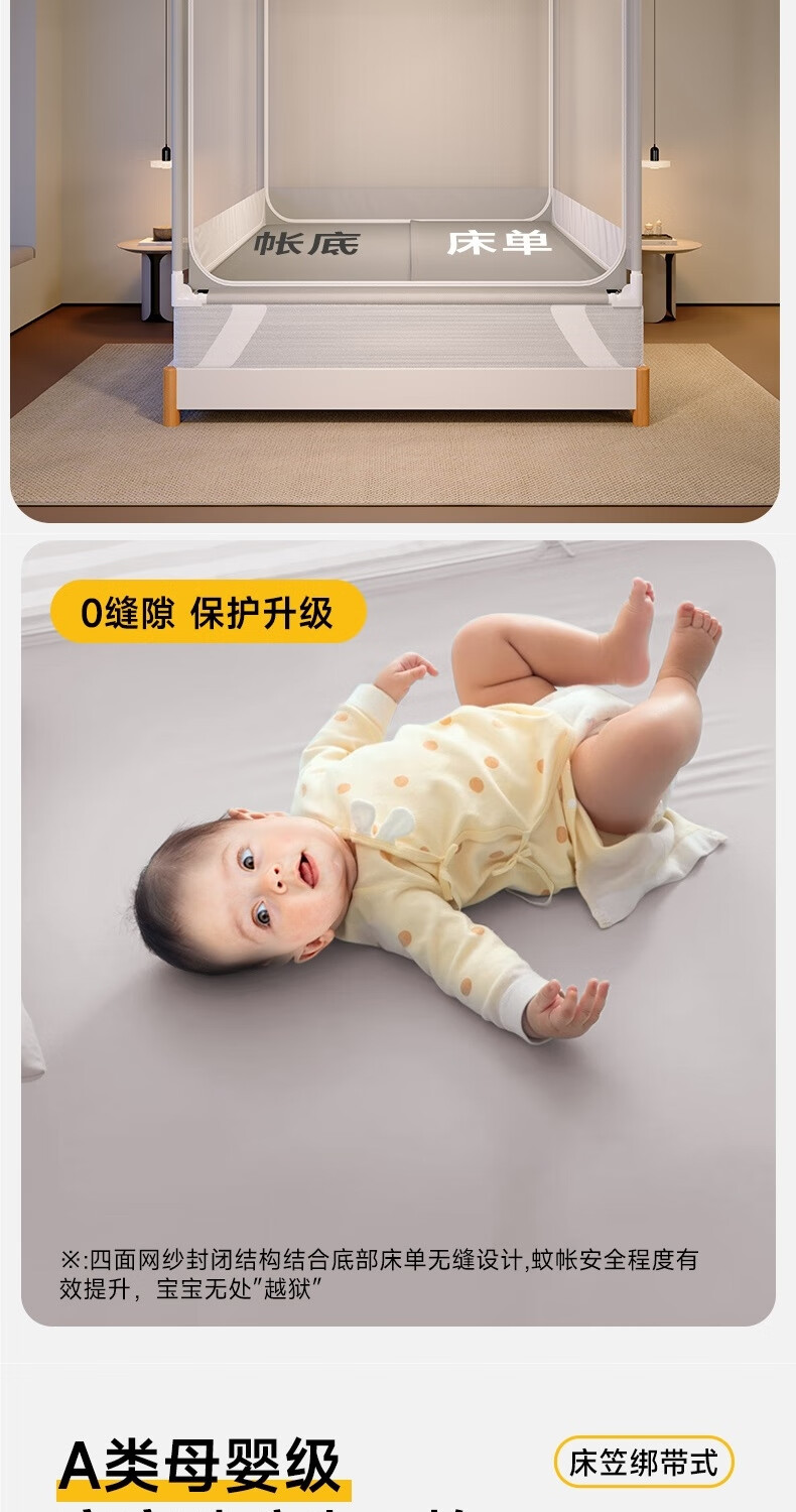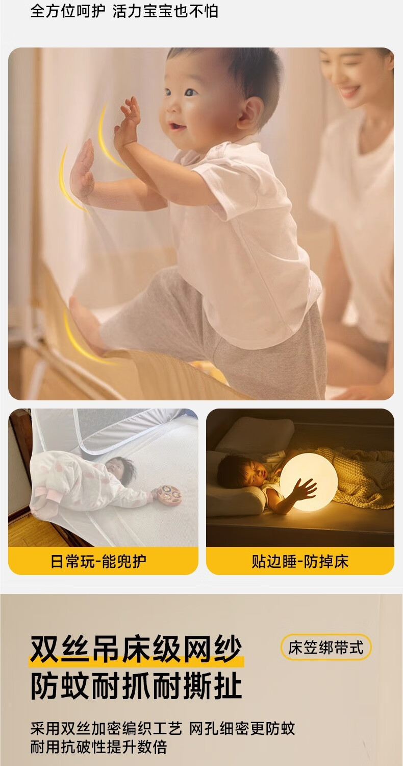 OTHER anti-fall crib mosquito net bed sheet one-piece full cover 2025 new home bedroom full bottom all-inclusive C good yellow bed sheet all-inclusive anti-fall bed making worry-free 1cm*1cm 1 point 2 meters bed width about 120 long about 193 do not choose the thickness of the mattress