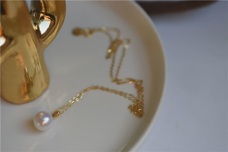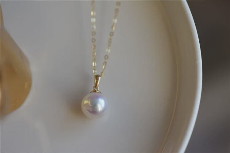 Pearl pendant, seawater melon seed buckle, gold round shape, strong brightness, versatile and exquisite, freshwater 5A 18k gold single pendant without chain, 8.5-9mm