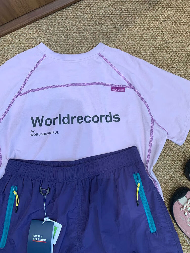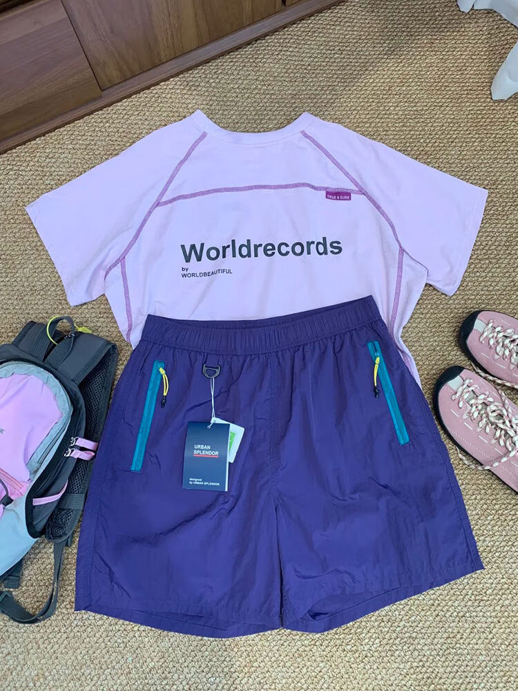 Pink and purple Hasselblad line sun protection short-sleeved shirt for men and women summer tennis badminton quick-drying clothing cycling suit sports suit pink and purple short-sleeved + purple shorts upgraded version M M