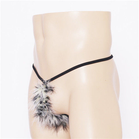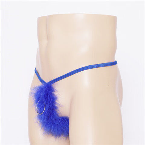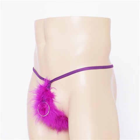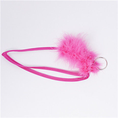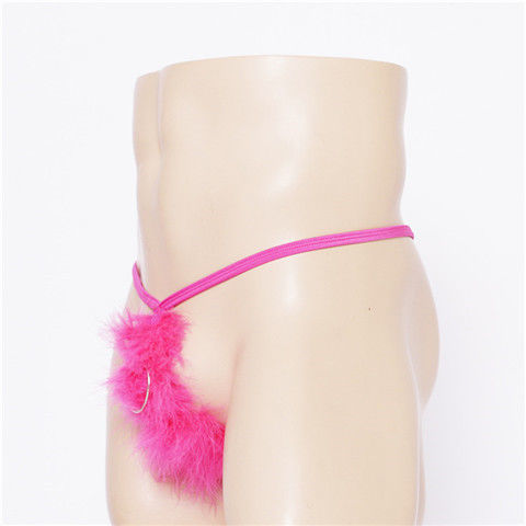 Men's sexy underwear European and American men's thong sexy temptation fluffy hoop transparent lace underwear low personality rose red