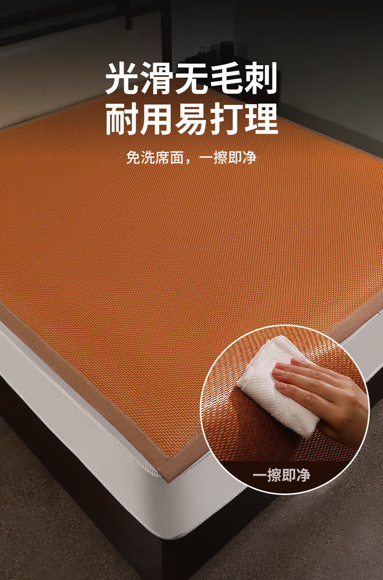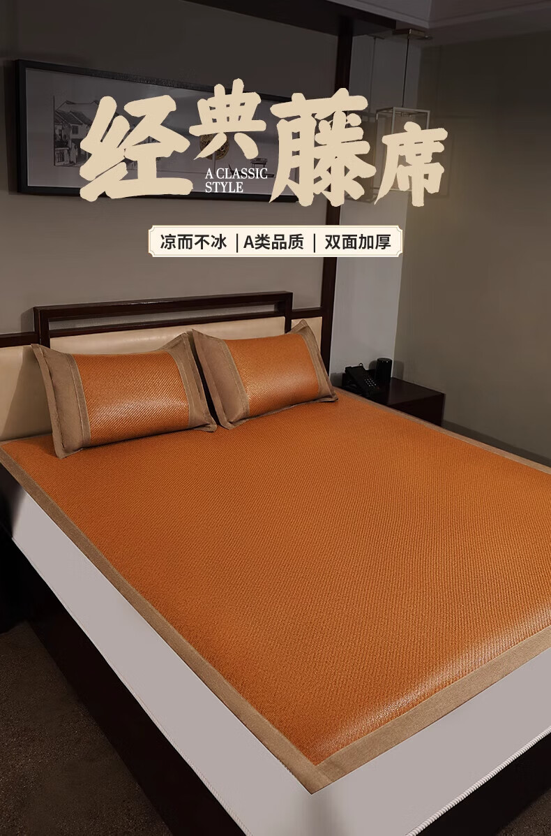 Jiyunmao 2025 new summer ice silk mat rattan mat double-sided mat winter and summer dual-use household mat foldable baby available ancient rattan single-sided mat丨A+丨 0.9m bed