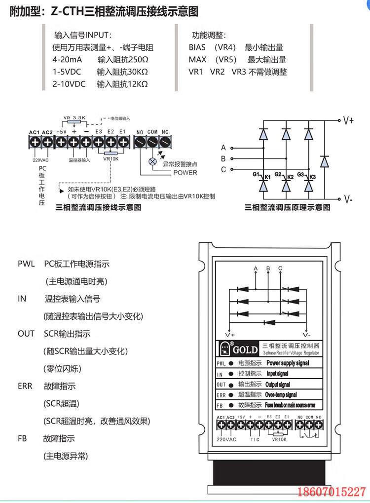 Three-phase AC 80V thyristor voltage regulator controller CTH50 70 90 temperature regulation CTH0A-80V-power 10 type 2-10 CTH30A380VF power 10KW 420mA
