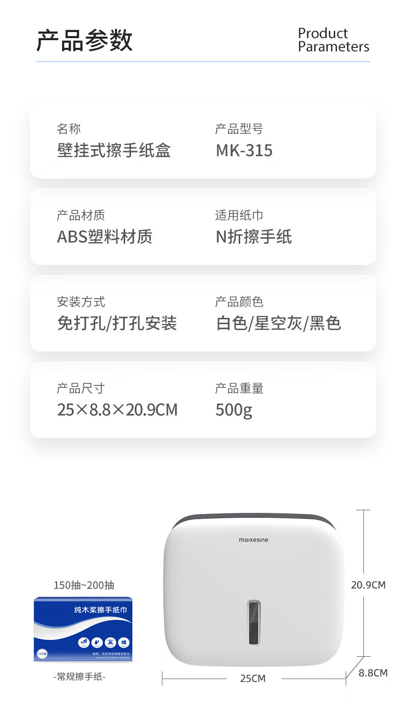 Shantou Lincun paper towel box wall-mounted hotel toilet toilet tissue box home kitchen bathroom punch-free paper towel holder sealed packaging paper towel-10 pack (200 pcs)