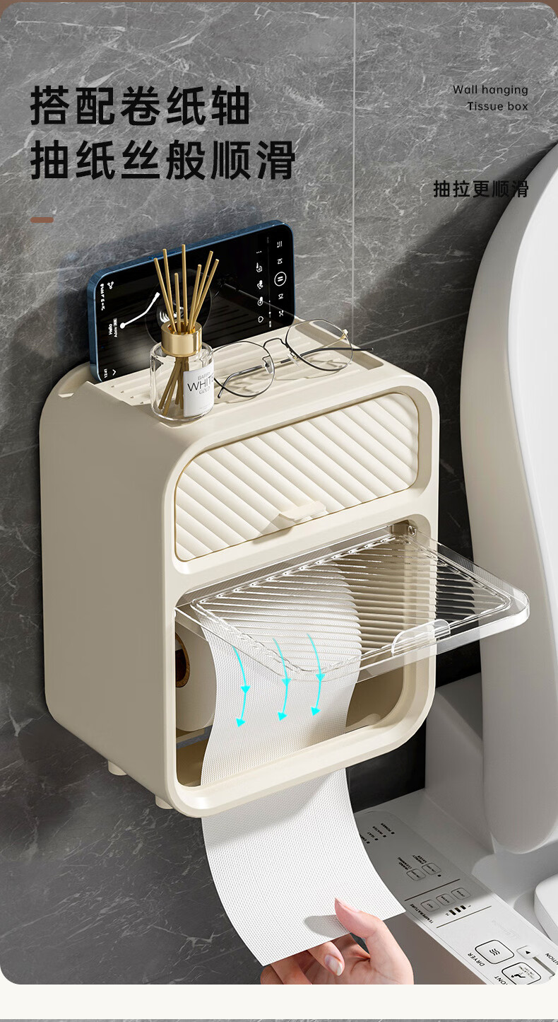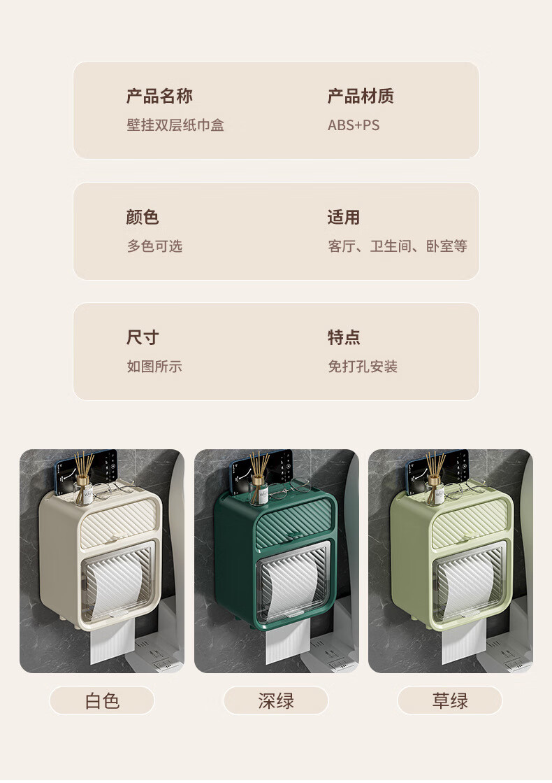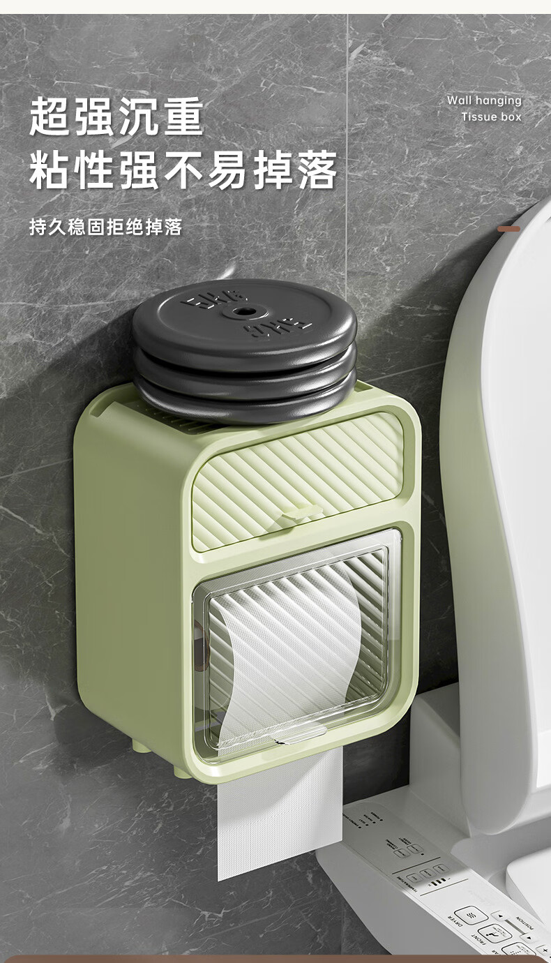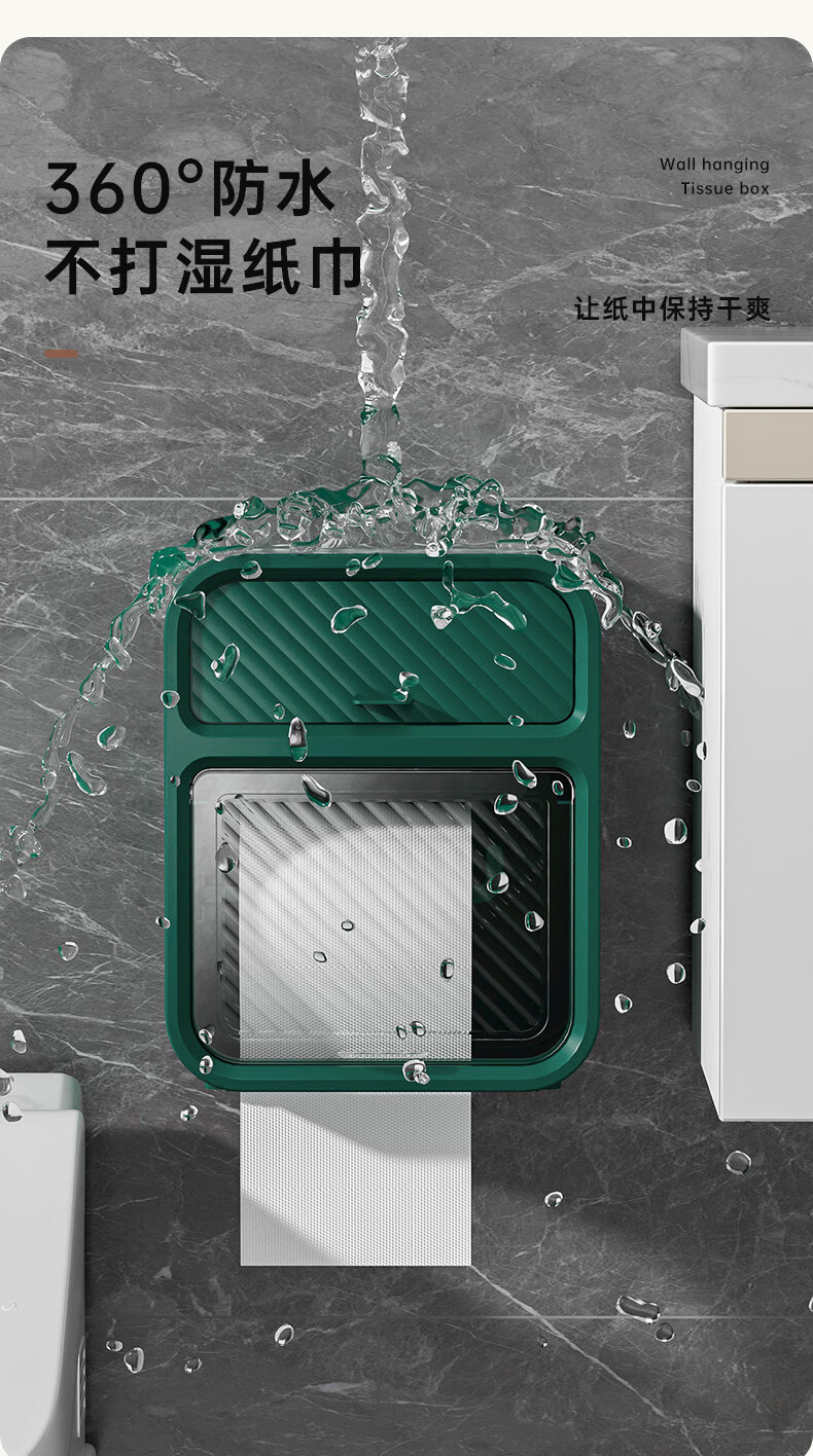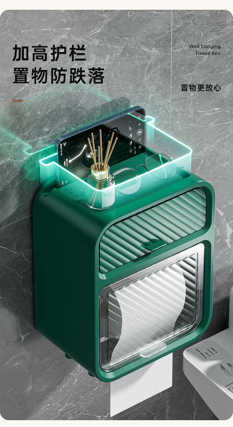 Shantou Lincun paper drawer double-layer tissue box paper drawer bathroom toilet paper storage box punch-free waterproof toilet wall-mounted roll paper dark green (waterproof and dustproof with paper shaft)