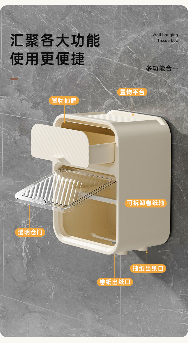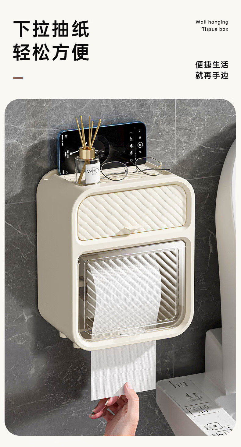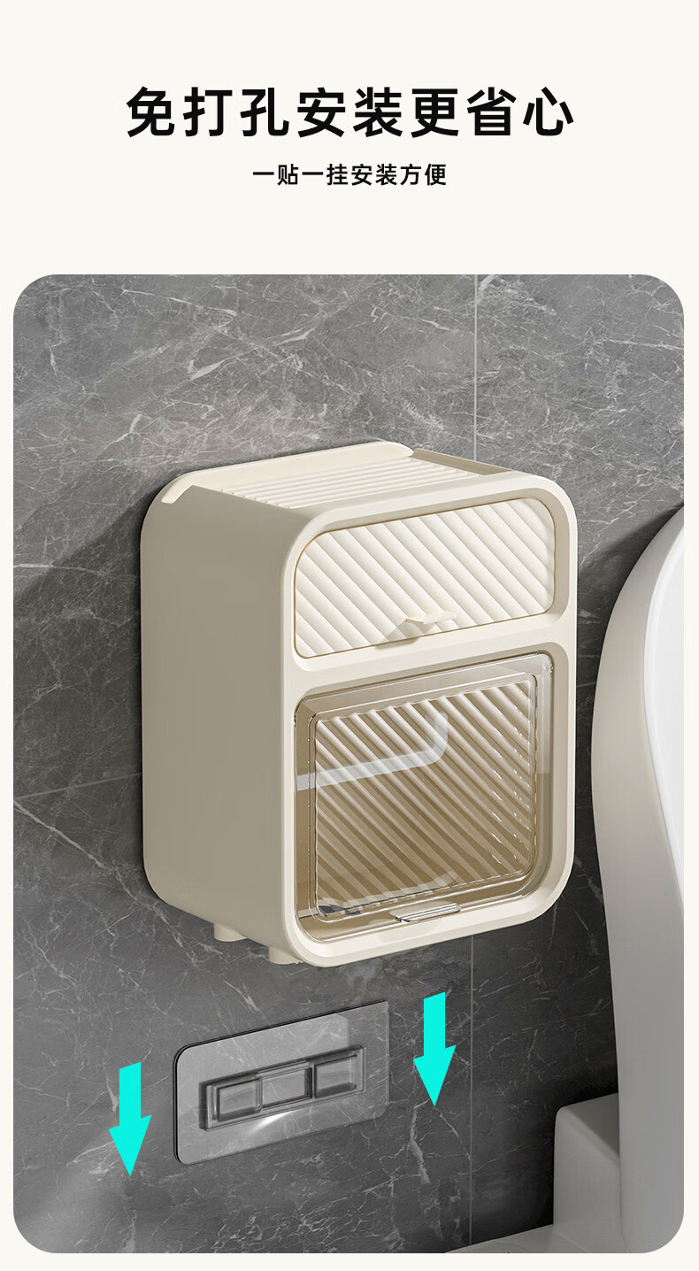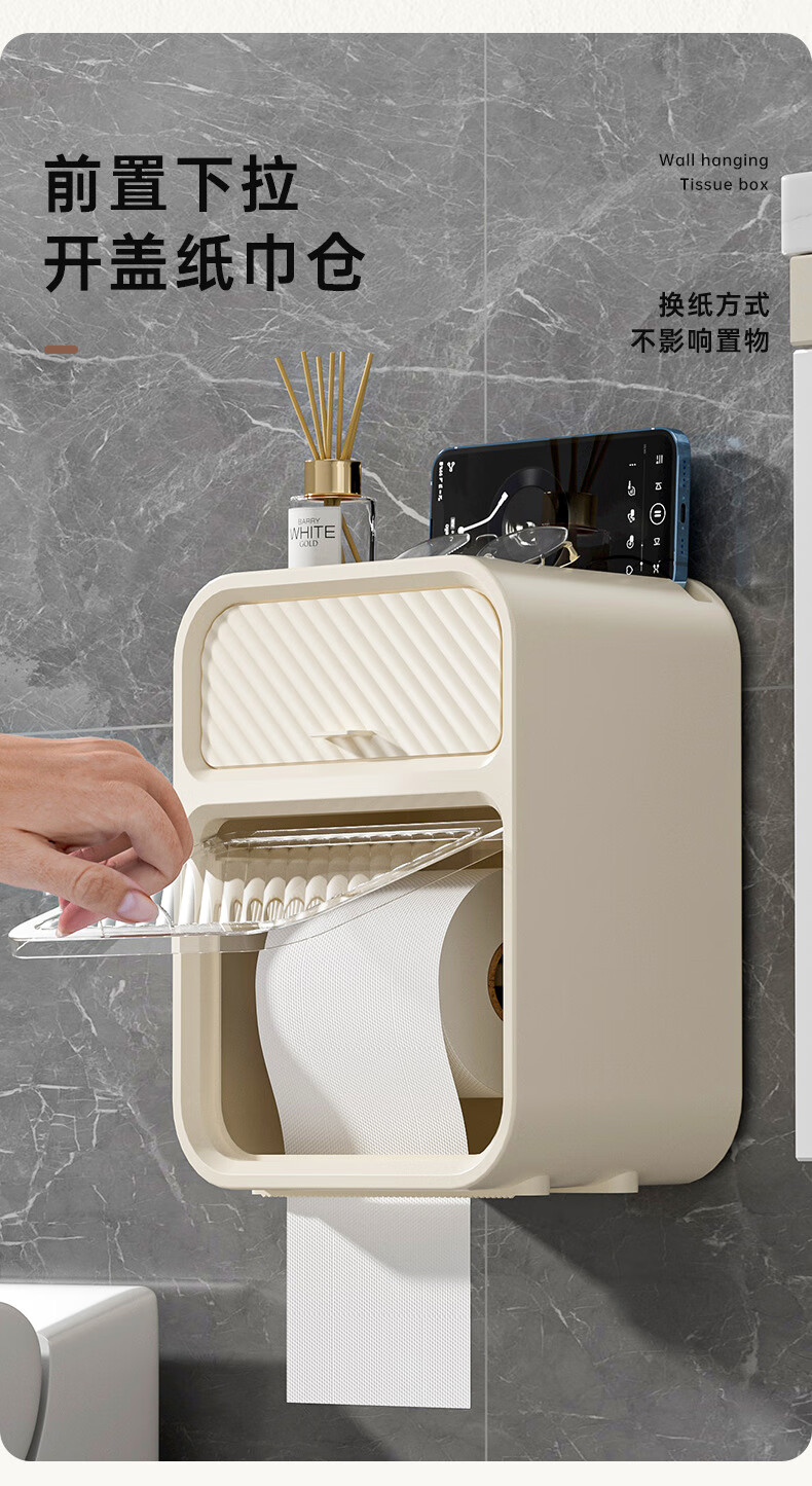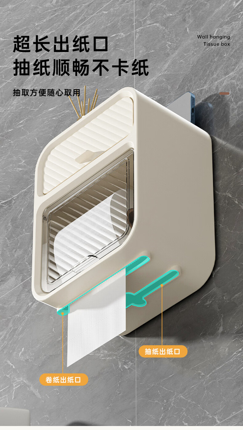 Shantou Lincun paper drawer double-layer tissue box paper drawer bathroom toilet paper storage box punch-free waterproof toilet wall-mounted roll paper dark green (waterproof and dustproof with paper shaft)