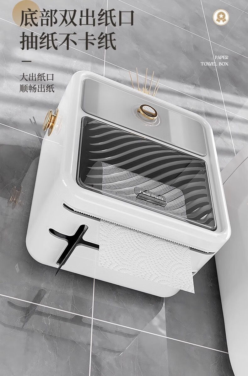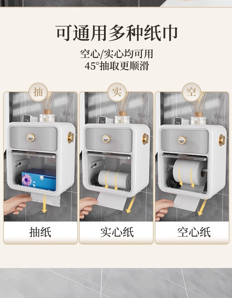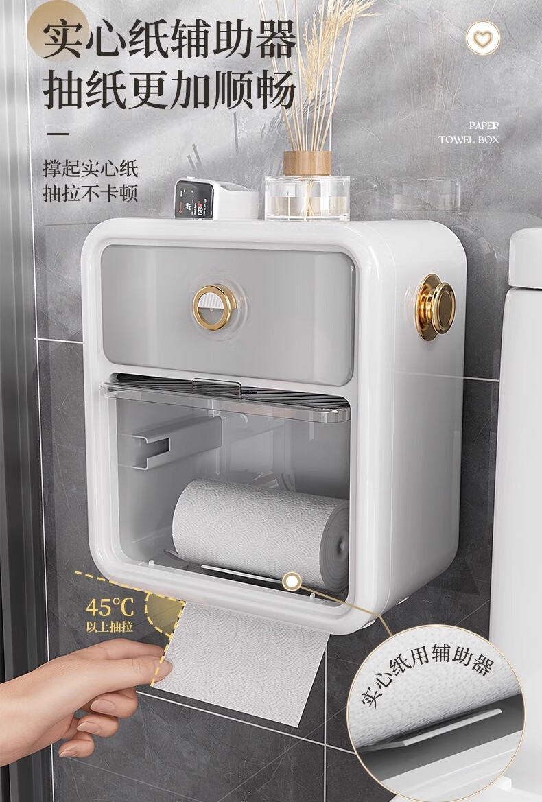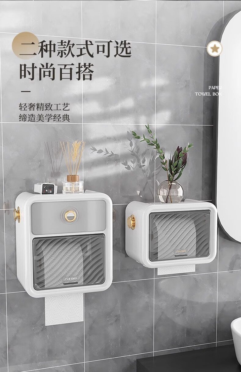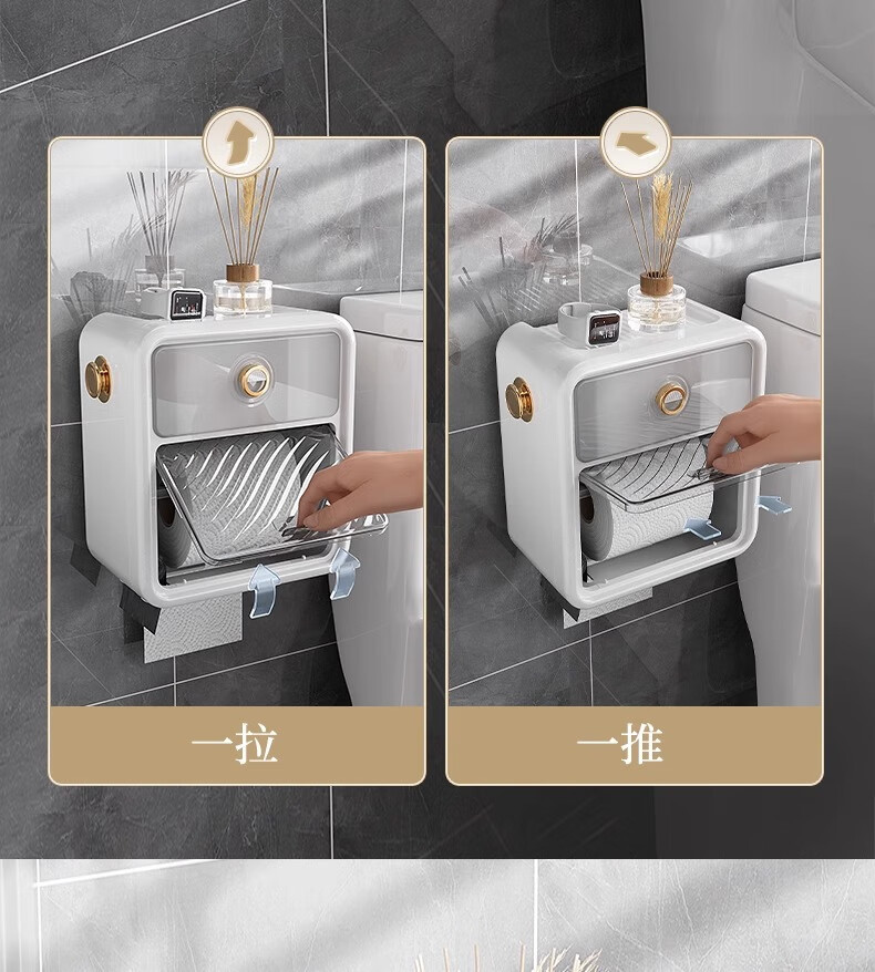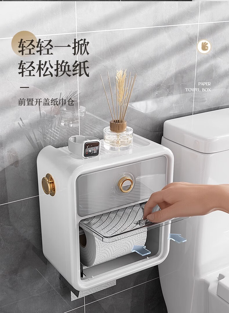 Shantou Lin Village punch-free bathroom tissue box toilet paper storage rack toilet paper toilet paper roll waterproof wall hanging cream white-regular style single layer