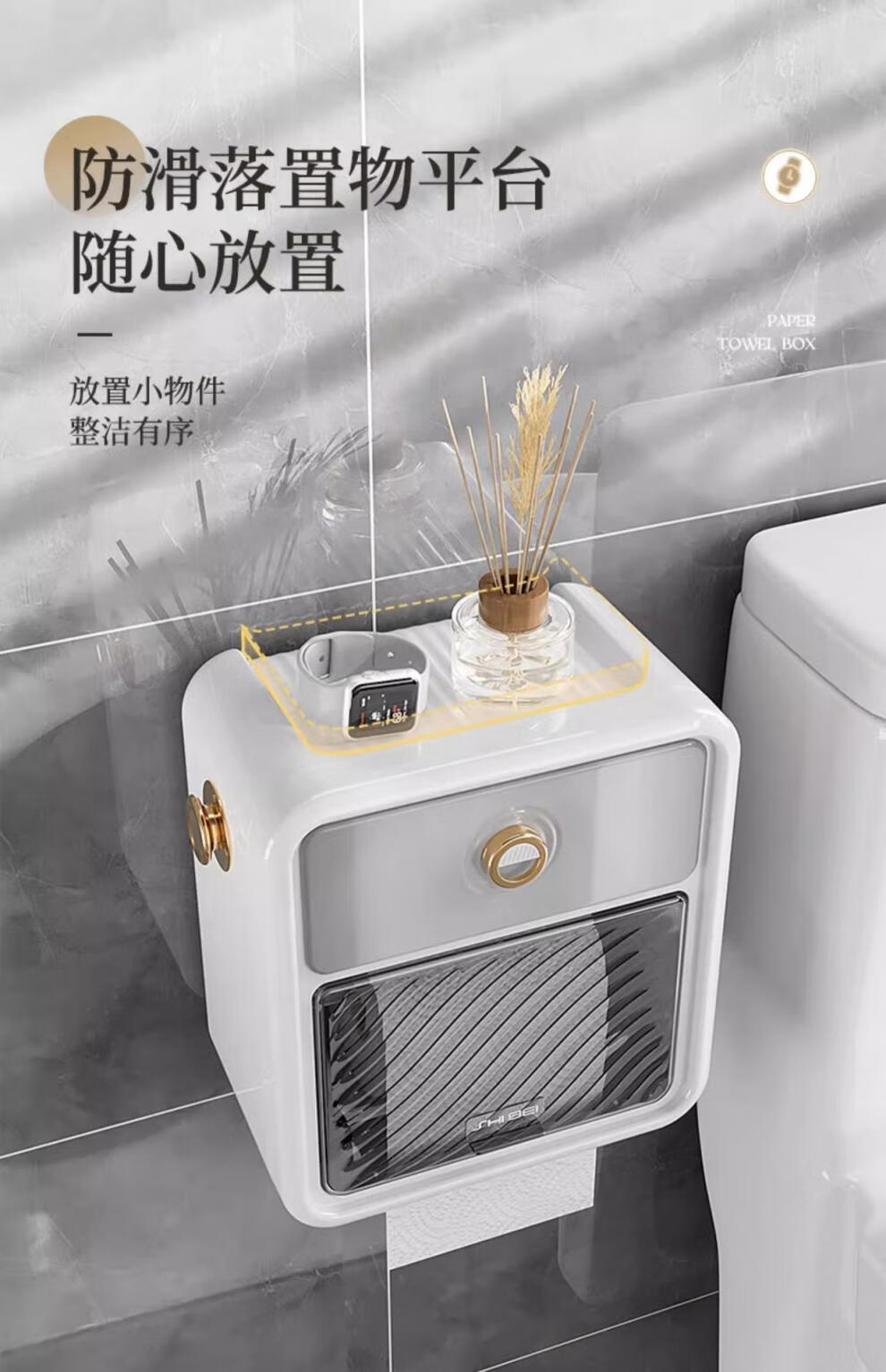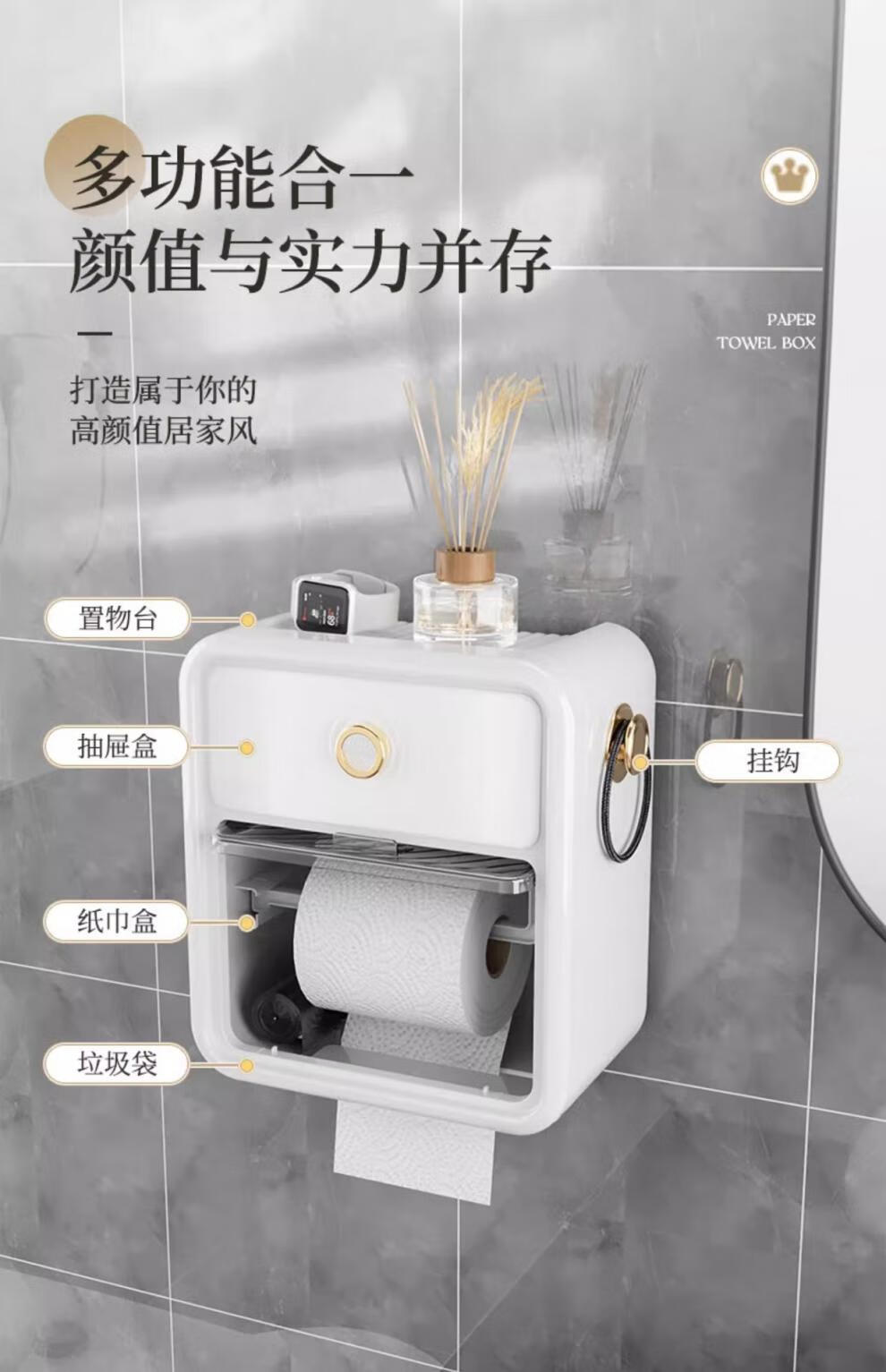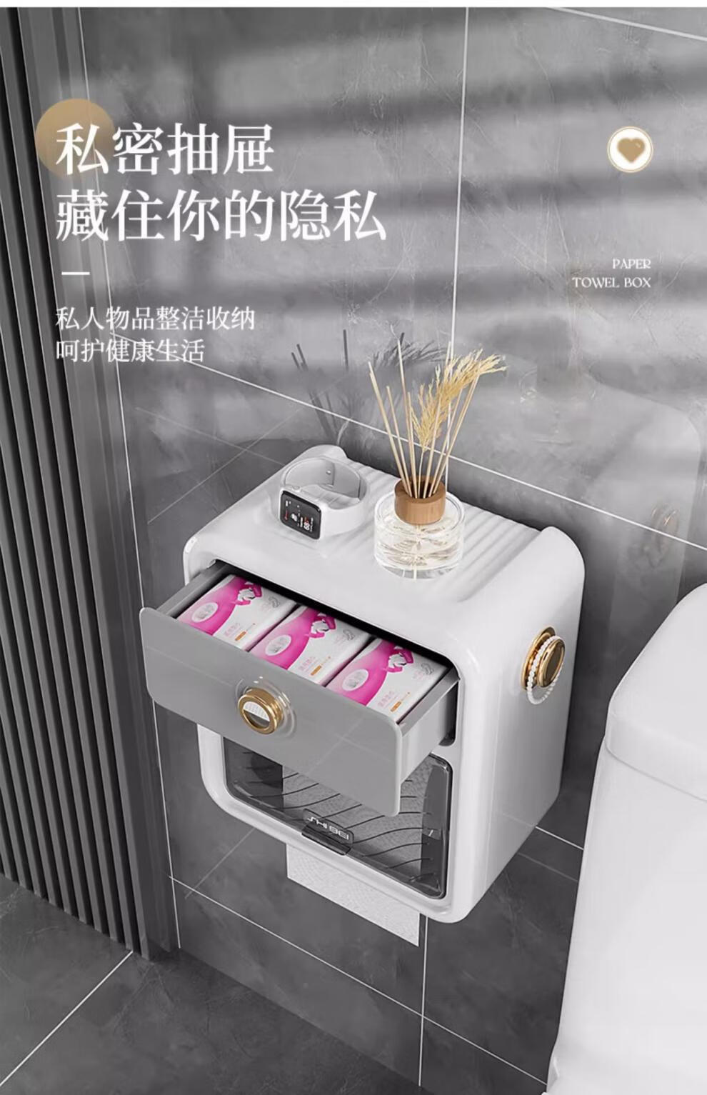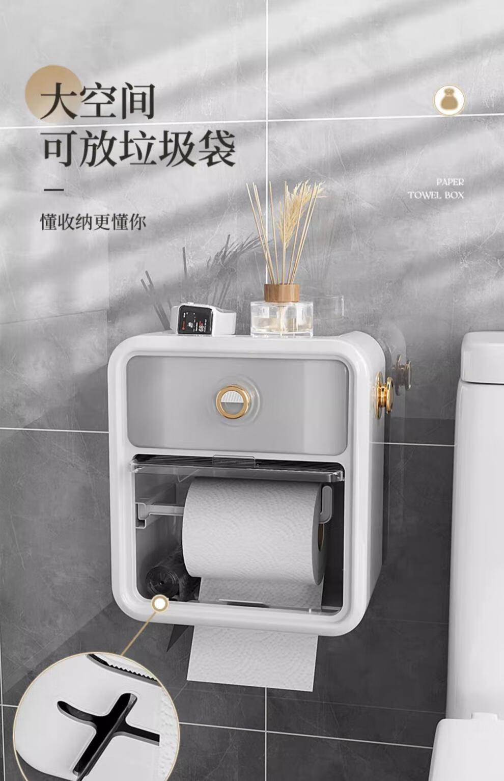 Shantou Lin Village punch-free bathroom tissue box toilet paper storage rack toilet paper toilet paper roll waterproof wall hanging cream white-regular style single layer