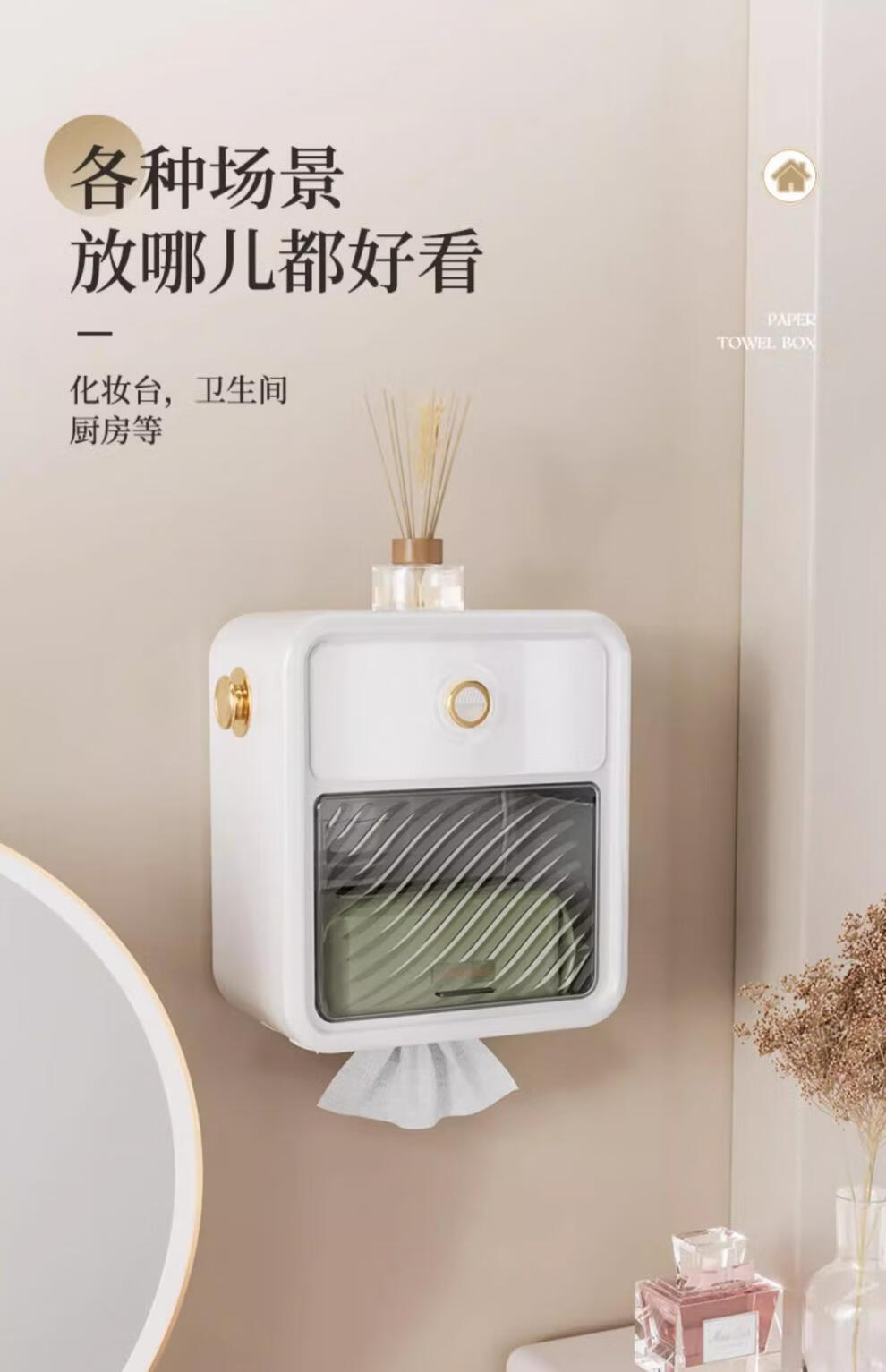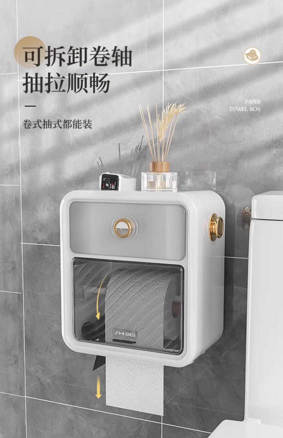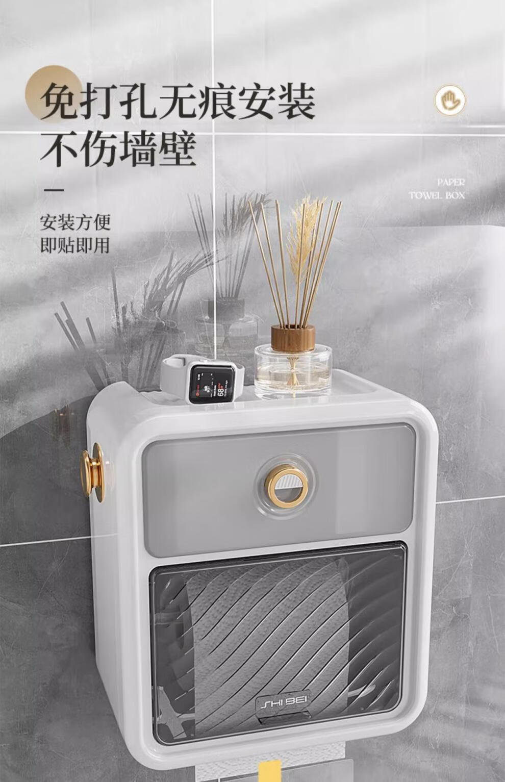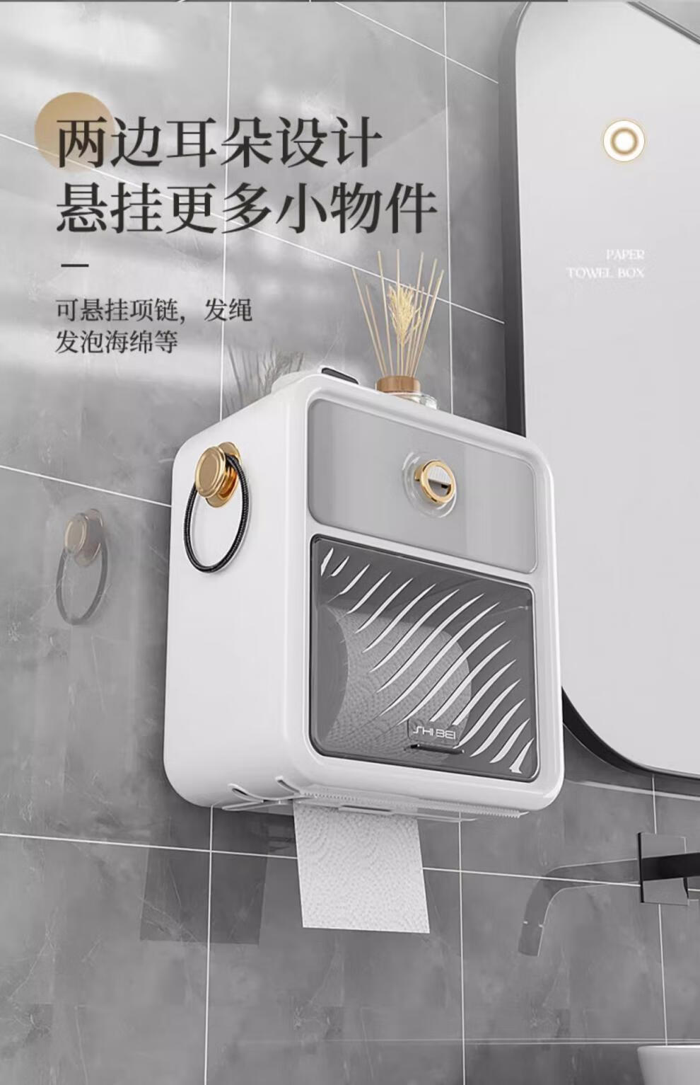 Shantou Lin Village punch-free bathroom tissue box toilet paper storage rack toilet paper toilet paper roll waterproof wall hanging cream white-regular style single layer