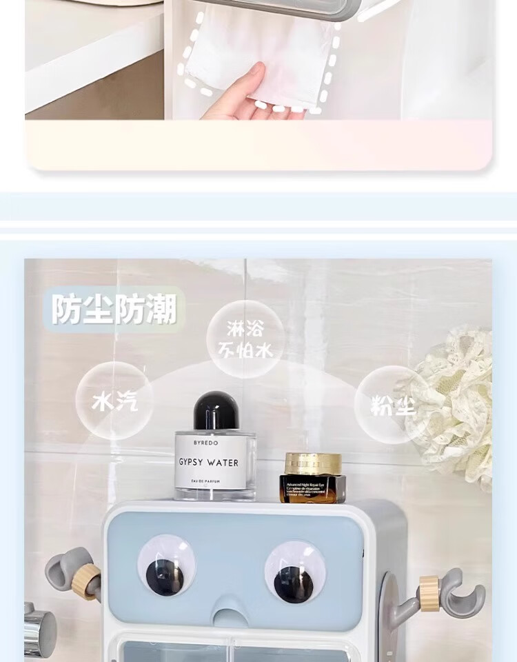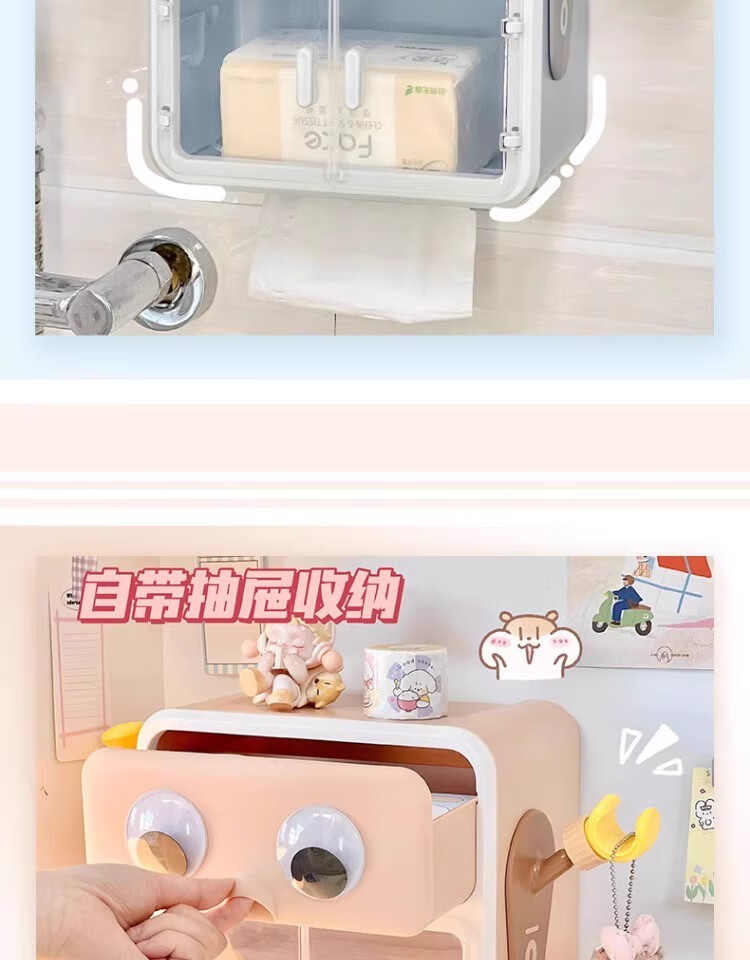 Shantou Lincun bathroom tissue box-like storage rack without punching wall-mounted toilet creative storage box paper box blue + eyes + gray hands