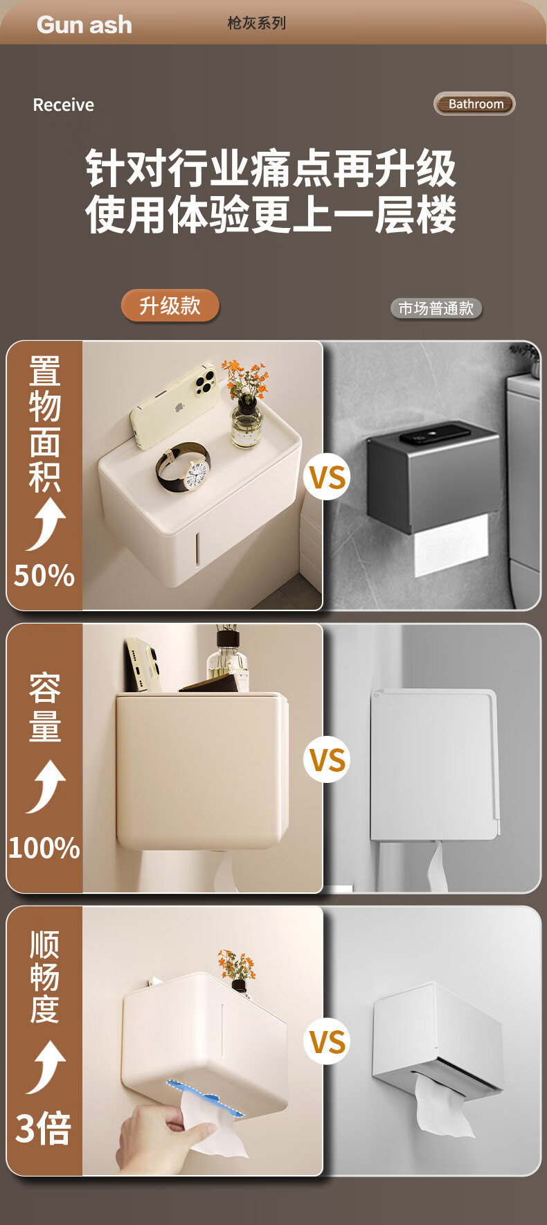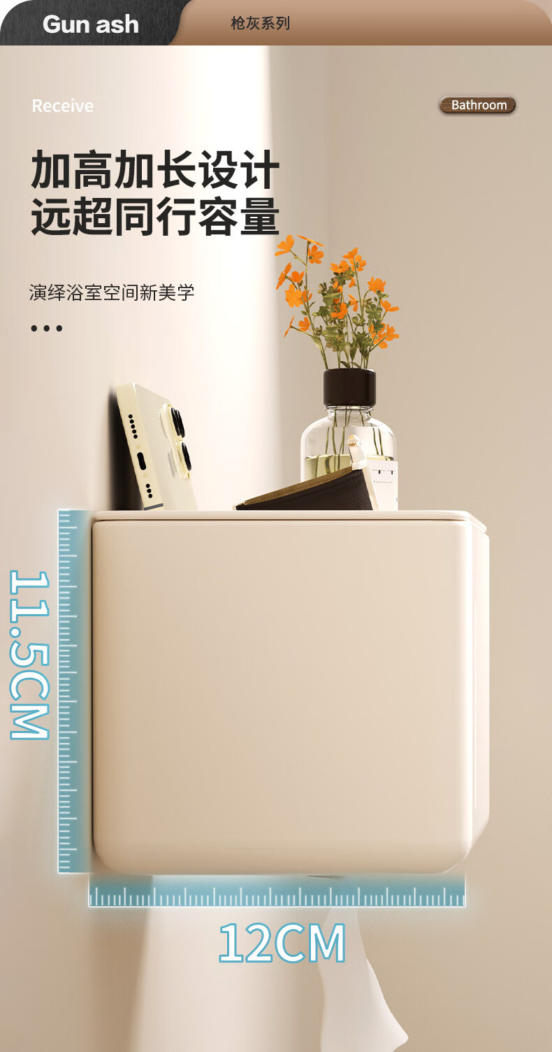 Shantou Lincun punch-free space aluminum tissue box bathroom roll storage rack double-layer tissue box bathroom wall storage rack carefully selected gun gray double-layer tissue box