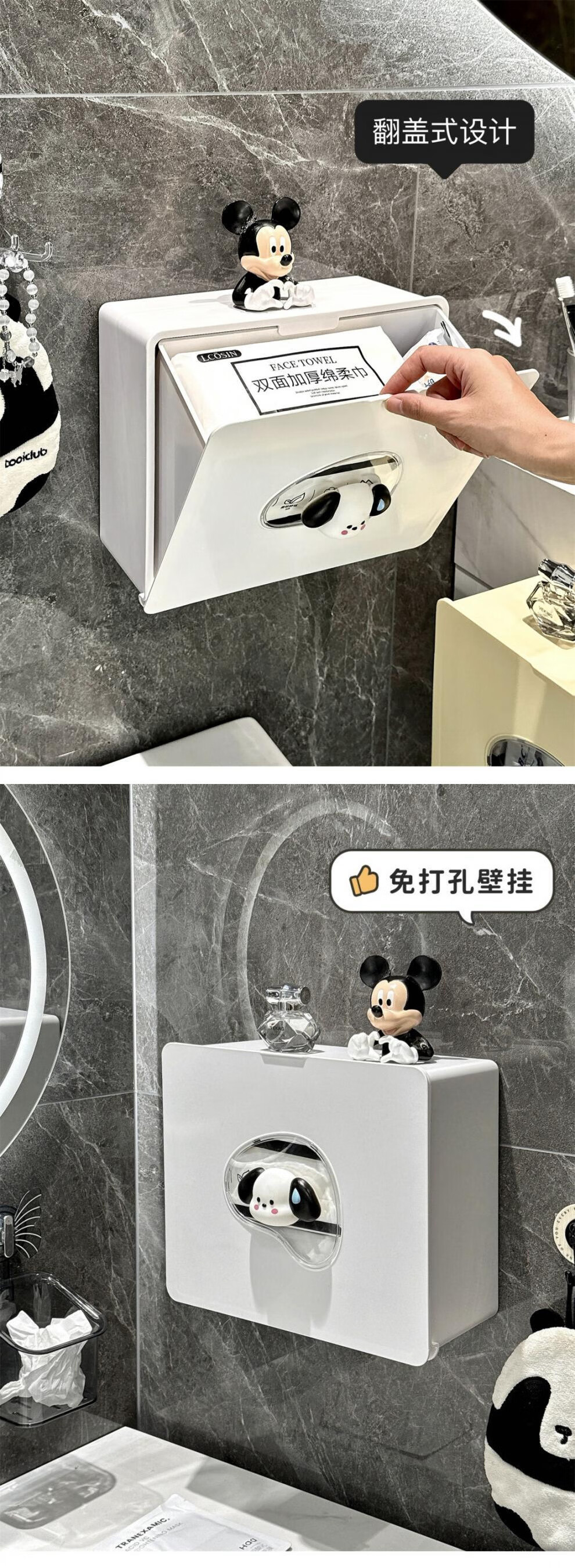 Shantou Lincun bathroom towel storage box bathroom storage rack without punching wall wall-mounted toilet tissue storage rack heart-shaped window | wall-mounted box | milky white