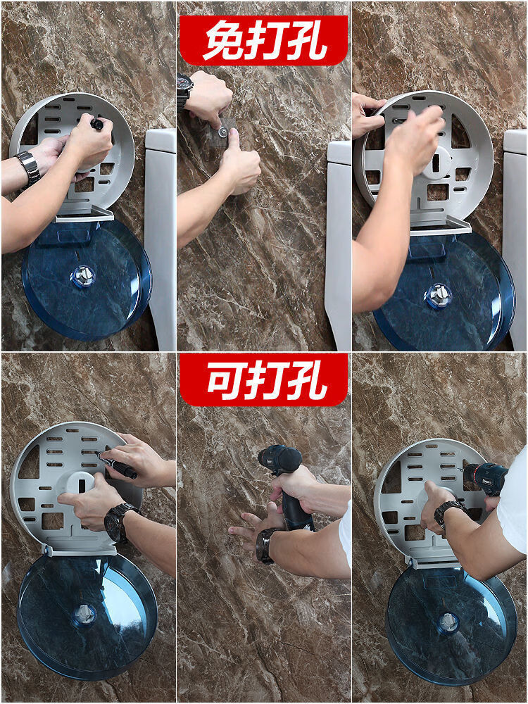 Shantou Lincun toilet paper box without punching large roll wall-mounted hotel bathroom large tray paper holder toilet paper tissue box manufacturer transparent blue thickened version - upgraded rotary switch without punching
