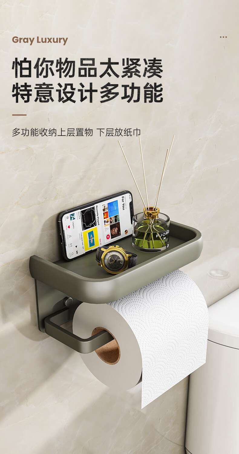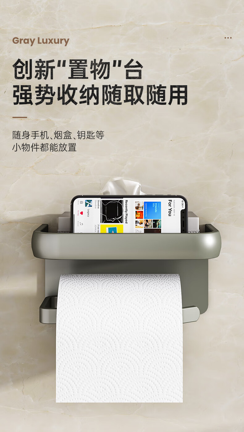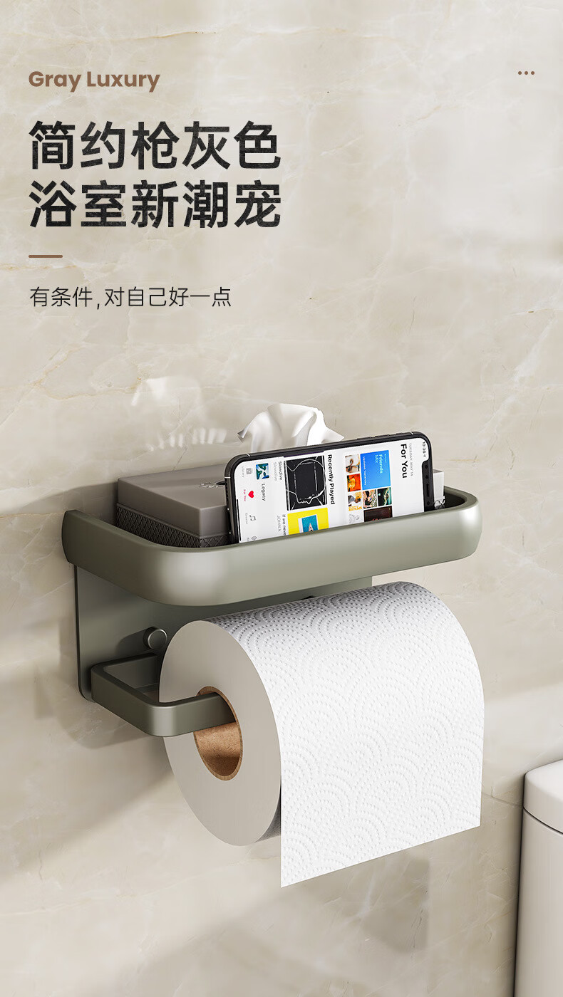 Shantou Lincun gun gray paper towel holder space aluminum bathroom roll storage rack punch-free toilet tissue box toilet paper storage rack space aluminum mobile phone roll paper holder - gun gray